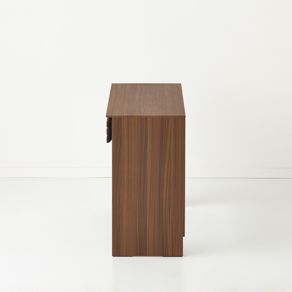 • 側面には、ウォルナット柄をリアルに再現した表面材を使用。サイドから見てもシックな雰囲気の仕上がり。