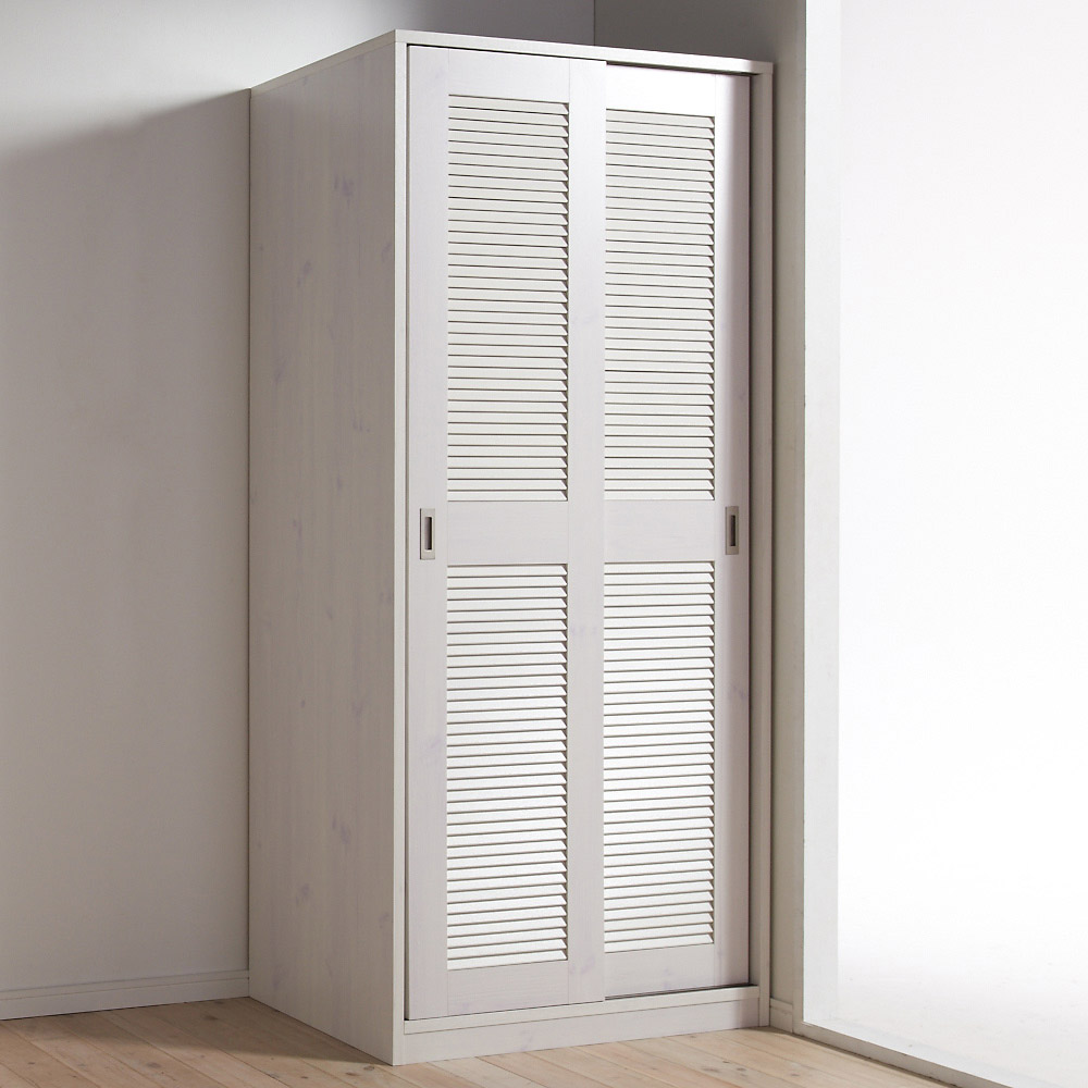 通気性の良い 引き戸ルーバーワードローブ 幅90cm ワードローブ クローゼット 衣類収納 644714
