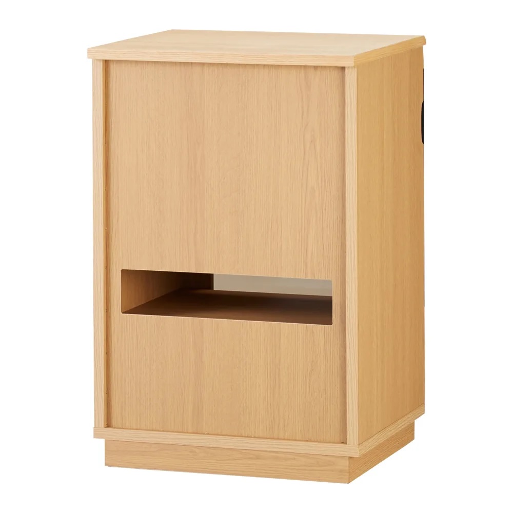 背面に配線用の穴があり、すべての段からコードを通せます。収納部有効内寸:幅45.5×奥行36×高さ64.5cm