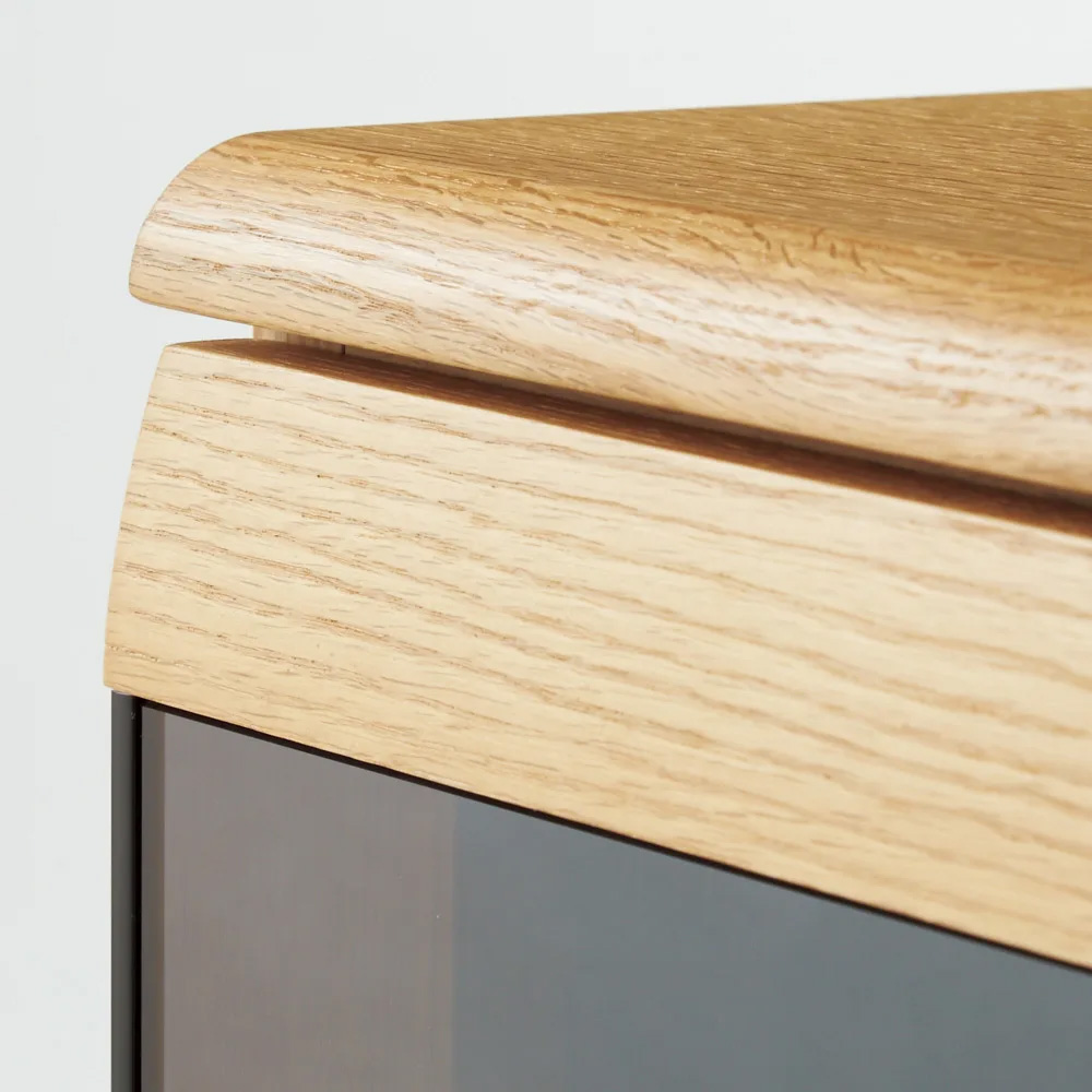 (ア)ナチュラル 丸みを帯びた洗練のフォルム。オーク天然木の上質な風合い。オーク材とブロンズガラスの組み合わせで都会的な印象に。