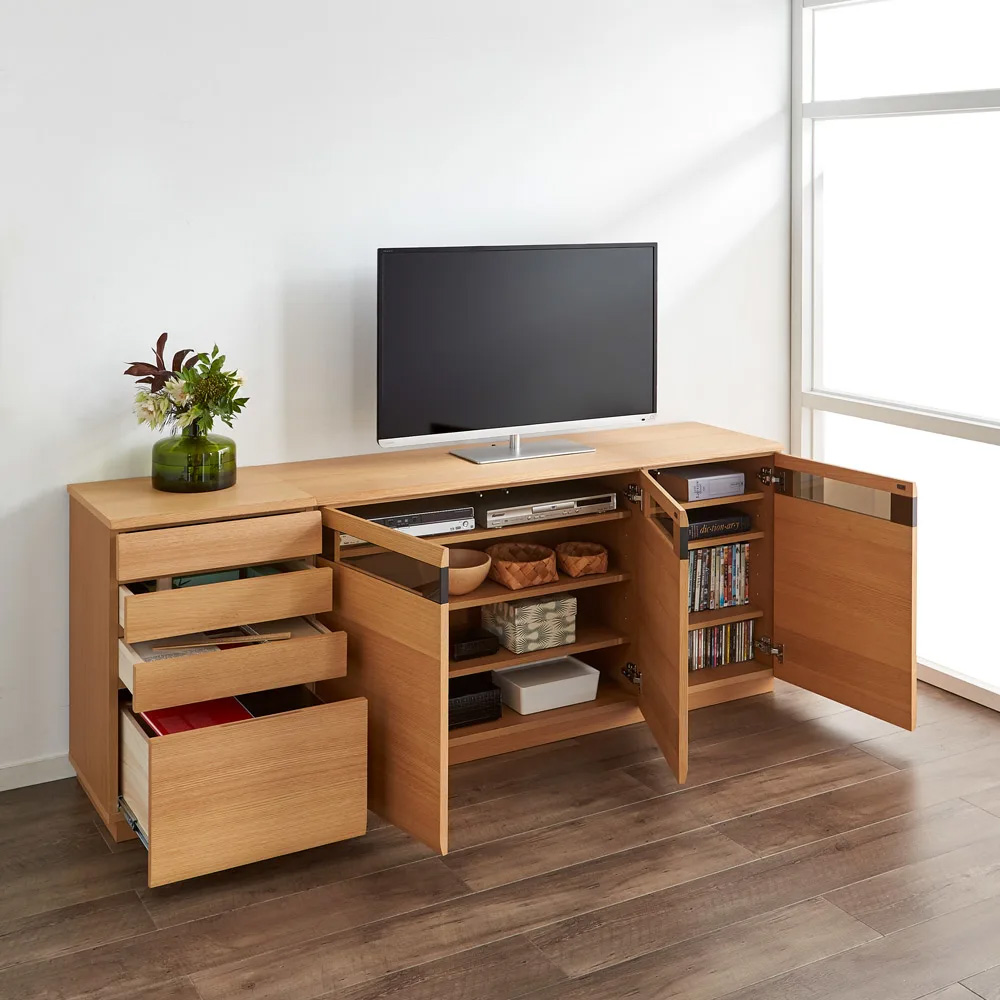 ●人気のRデザインテレビボードにハイタイプが追加。ソファダイニングでも見やすい高さ設計です。