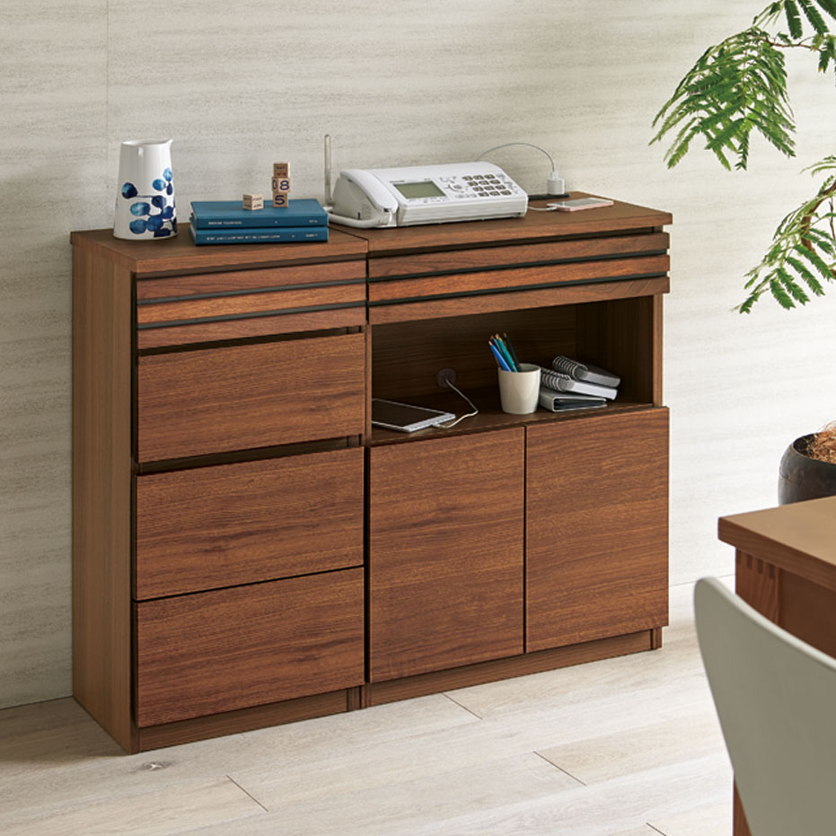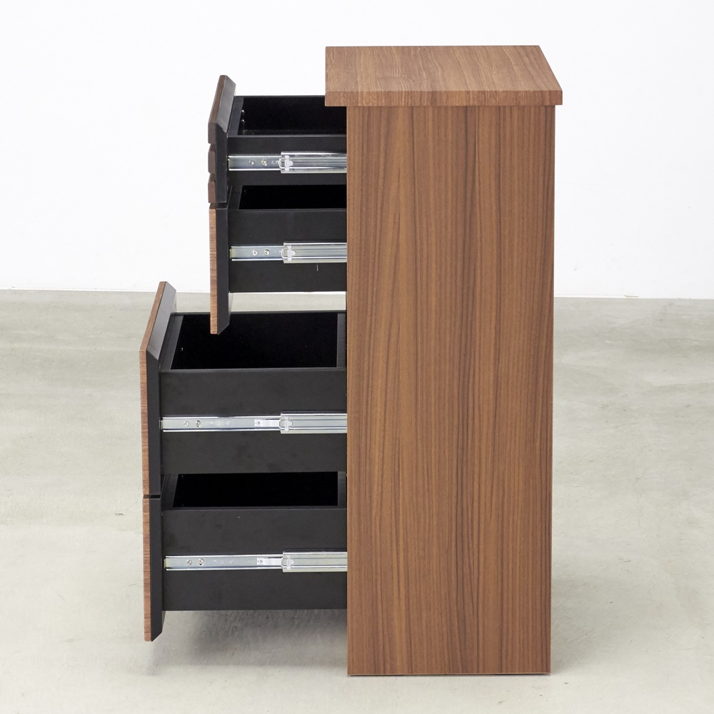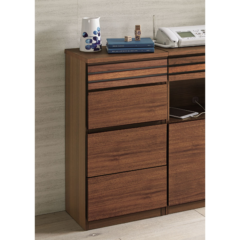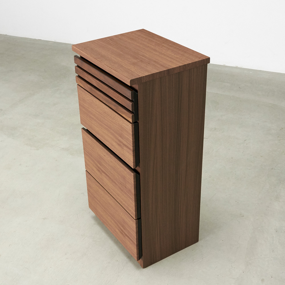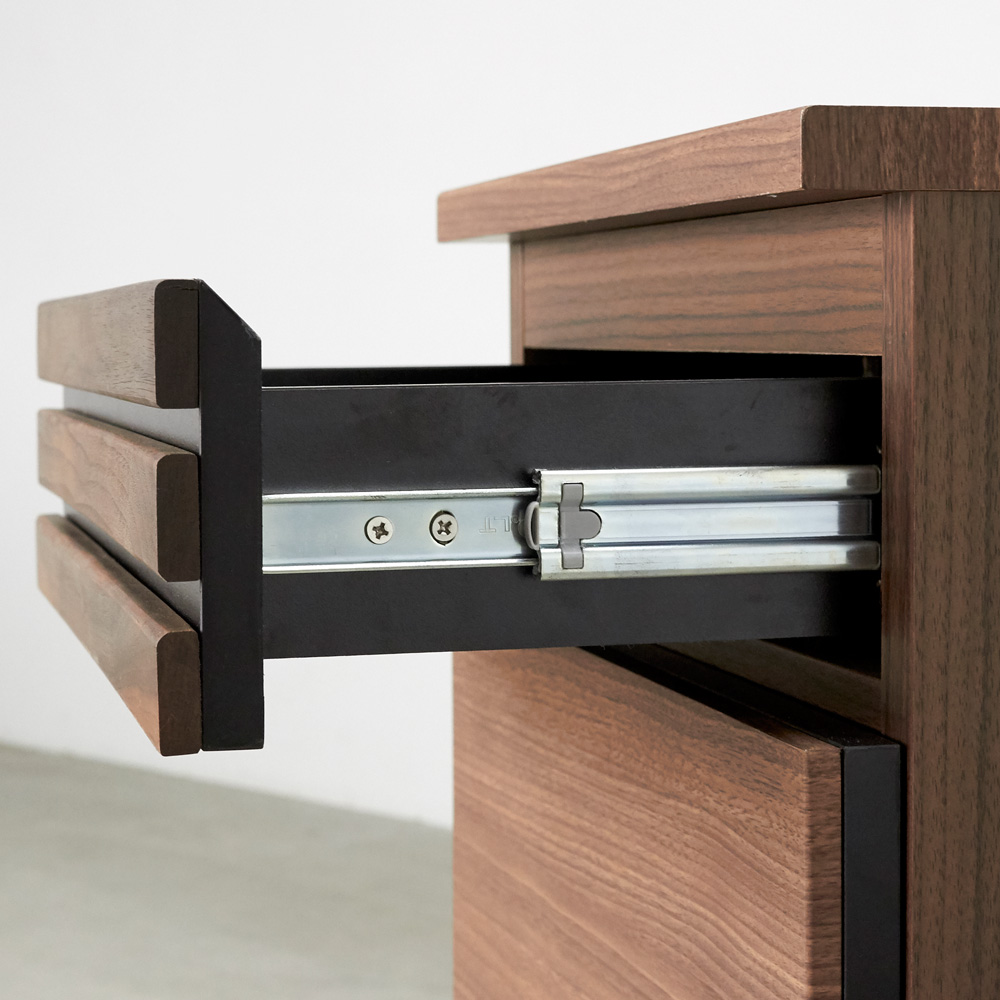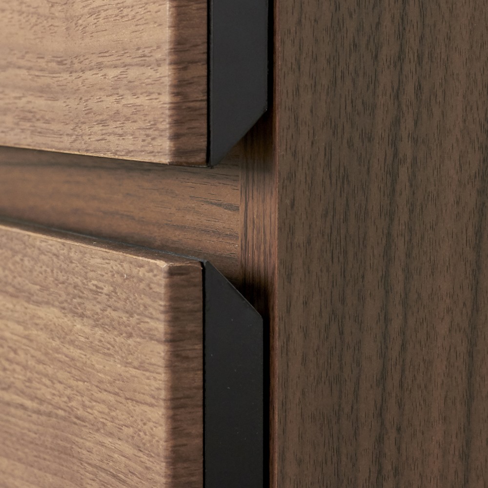 ■素材:前面…ウォルナット天然木(オイル仕上げ)・強化化粧板、天板…強化化粧板、側面…化粧板