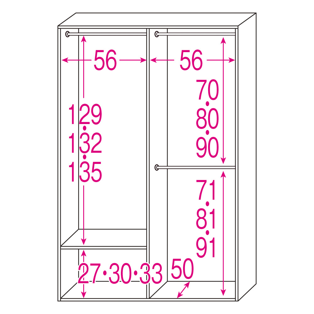 ●クローゼットタイプは、下のハンガーバーと棚板が可動します。