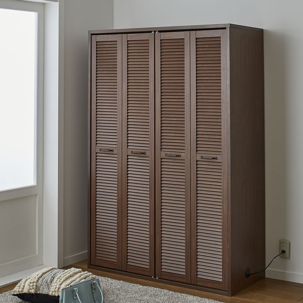 ●湿気や臭いがこもりにくい洋服に優しいルーバー扉が特徴です。●折れ戸なら開閉に場所を取らないので、寝室や納戸、ウォークインクローゼットなど狭い場所でも手軽にワードローブが作れます。