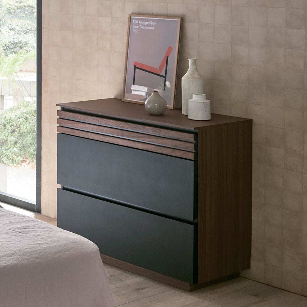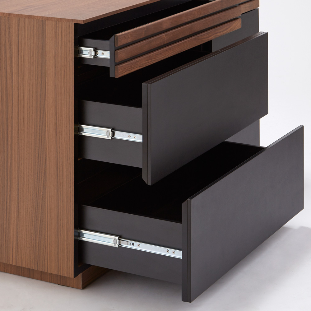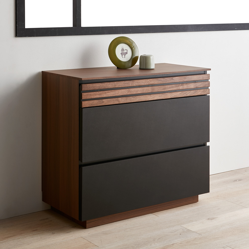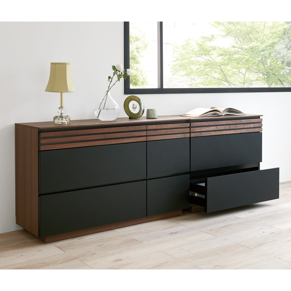 ■素材:前面…ウォルナット天然木(オイル仕上げ)・オレフィン化粧板、天板…強化化粧板、側面…化粧合板