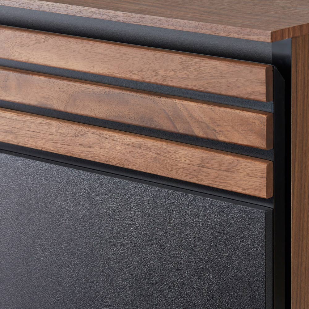 前面にウォルナット無垢材とレザー調の表面材を組み合わせた高級感あるデザイン。