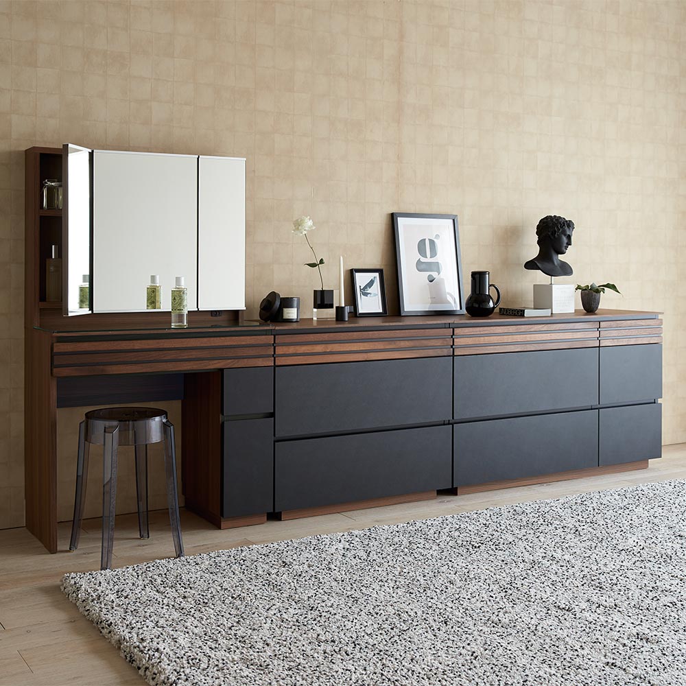 [コーディネート例]写真は幅120チェストとドレッサーの組み合わせ例となります。