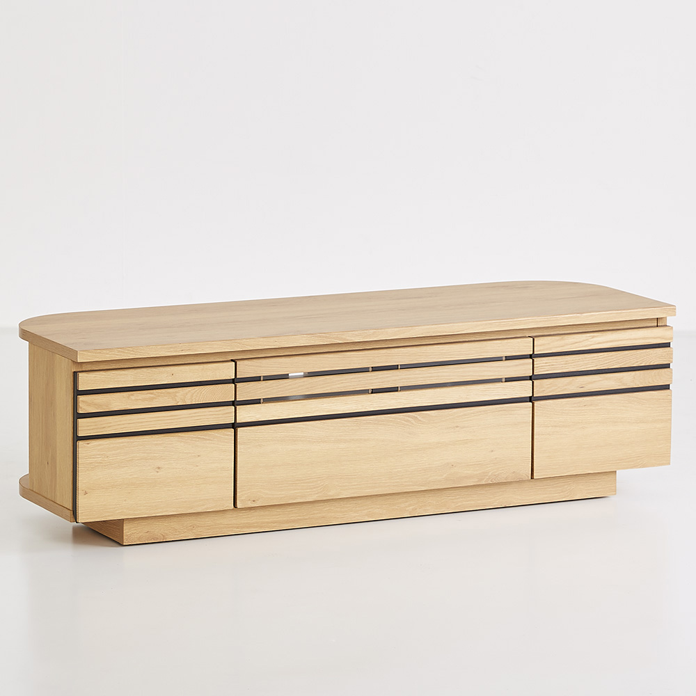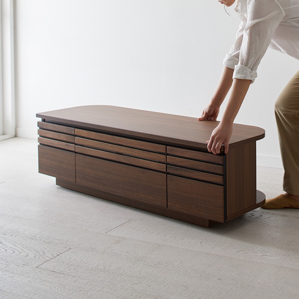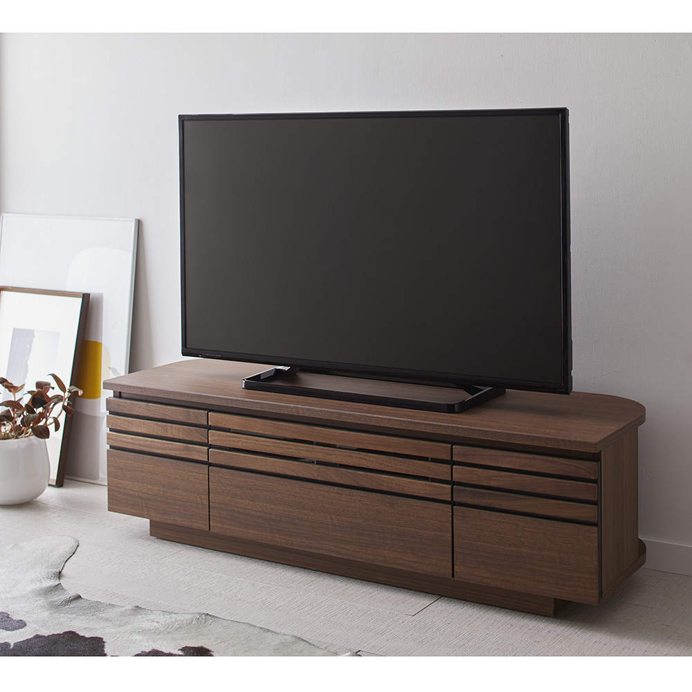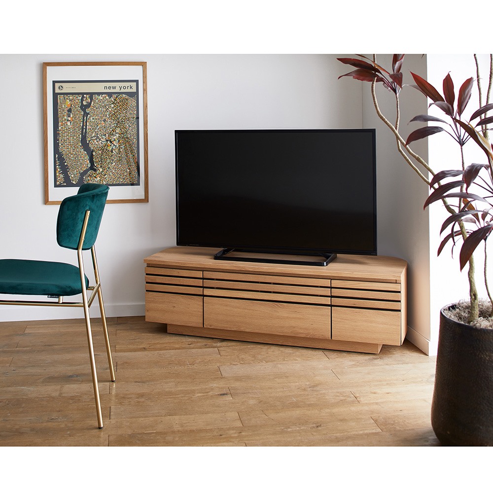 テレビの指定席、コーナーに設置できるモダンでお洒落なテレビボード。背面がアール型なので、微妙な角度調整も可能です。