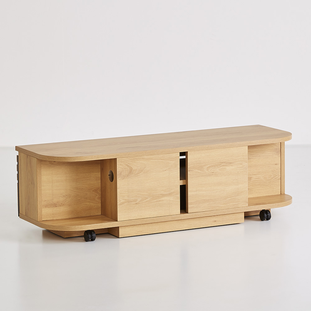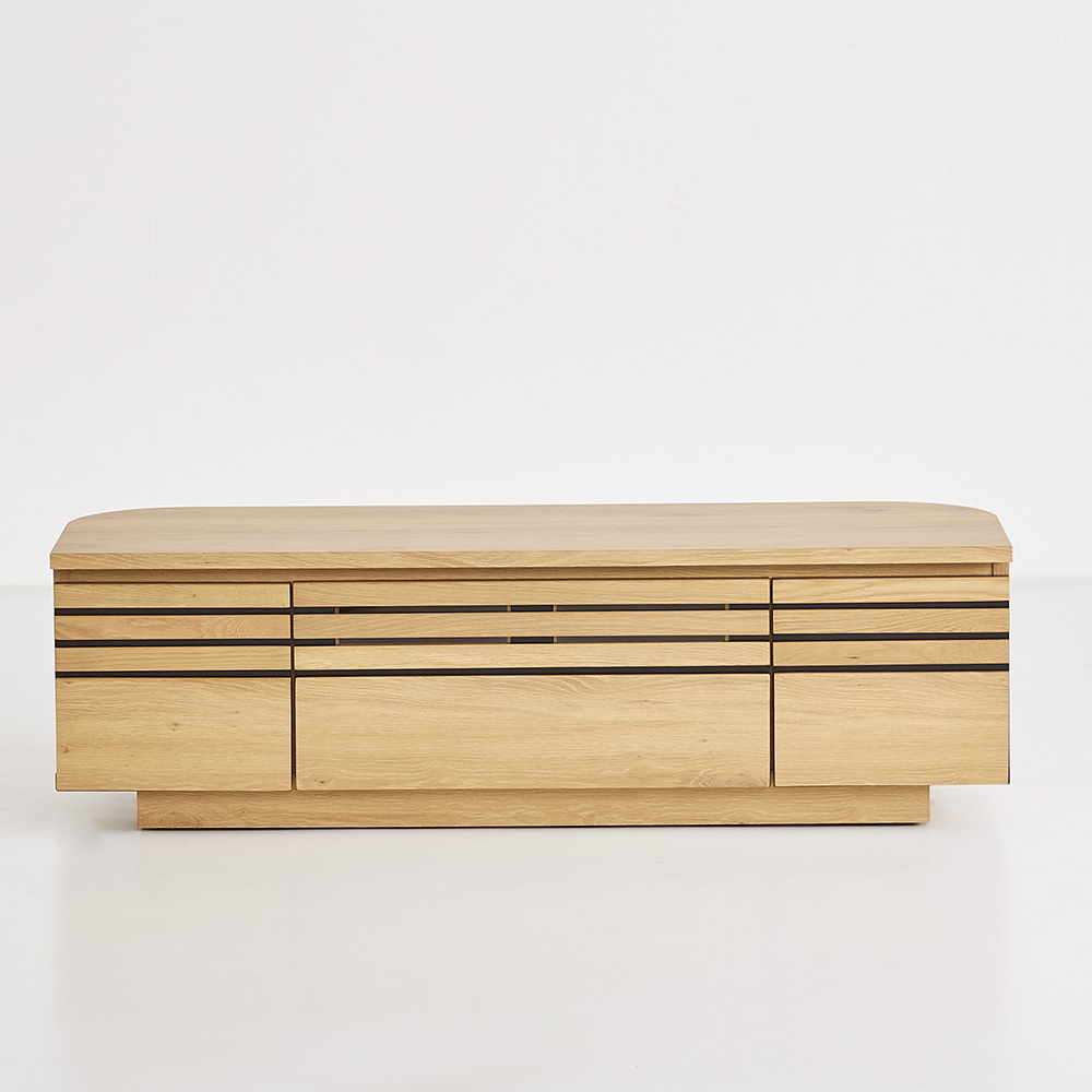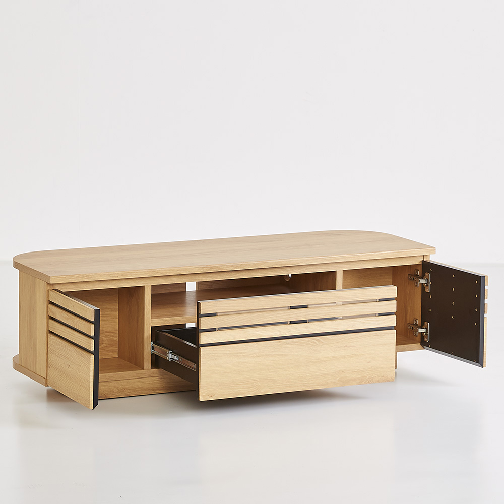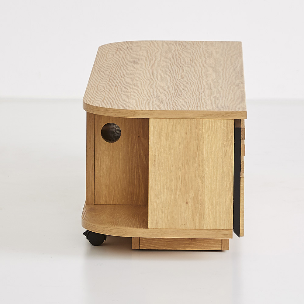 テレビの指定席、コーナーに設置できるモダンでお洒落なテレビボード。背面がアール型なので、微妙な角度調整も可能です。