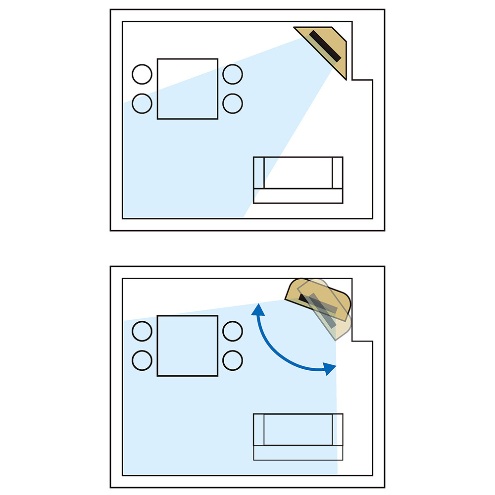 ソファやダイニングなどあらゆる場所から見やすい角度に調整して頂けます。