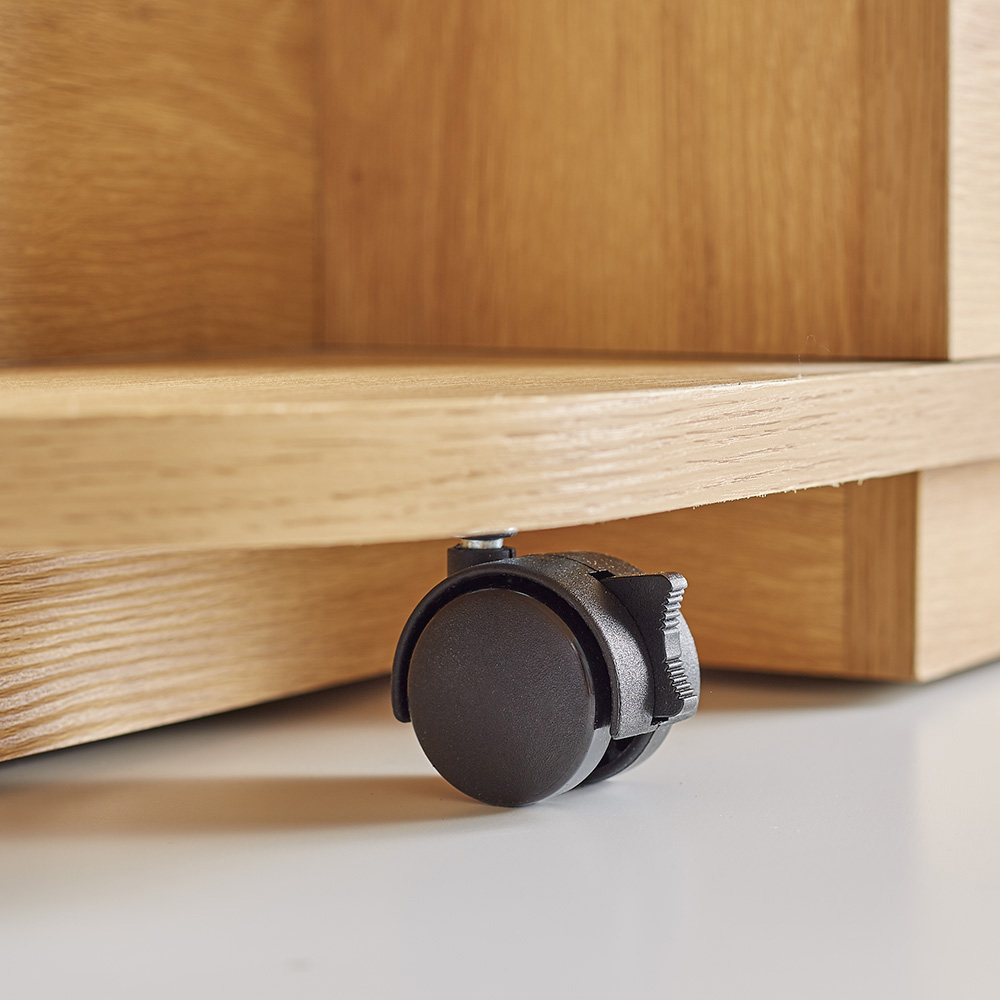 キャスター付きなので移動もラクラク。背面のお掃除も簡単にできます。動かしやすいので、配線作業も容易にこなせます。