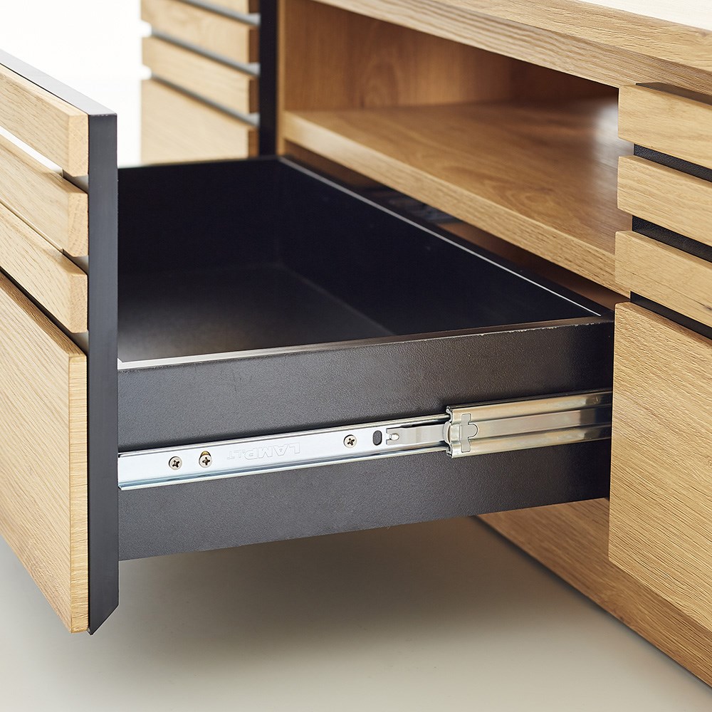 スライドレールなので開閉もスムーズで奥まで出し入れが簡単です。検索性の高い引き出し構造で、ストレスなくお気に入りのメディアを探せます。