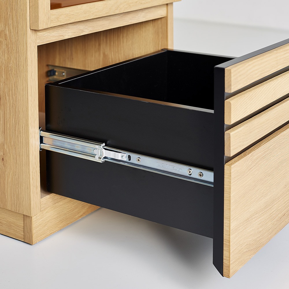 スライドレールなので開閉もスムーズで奥まで出し入れが簡単です。検索性の高い引き出し構造で、ストレスなくお気に入りのメディアを探せます。
