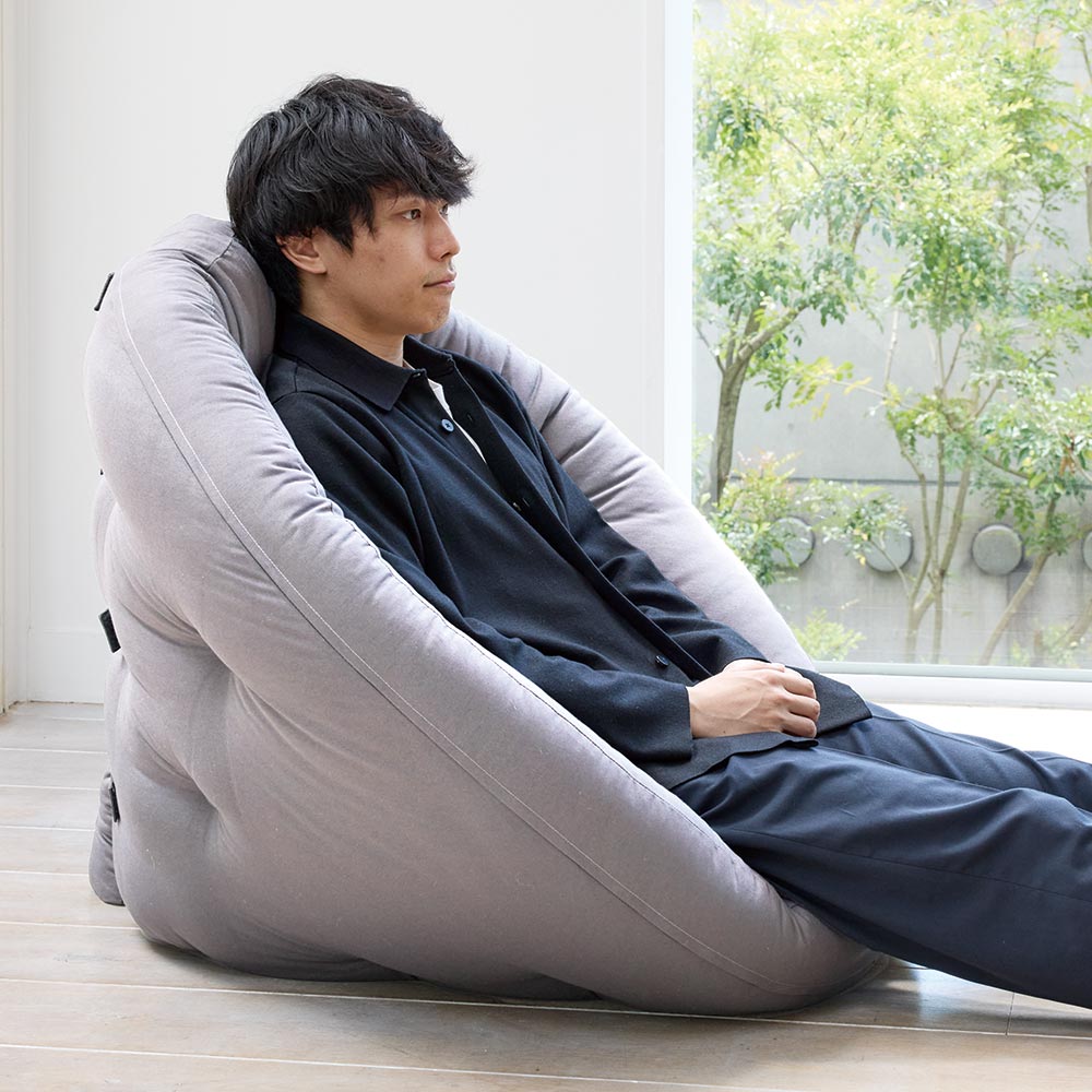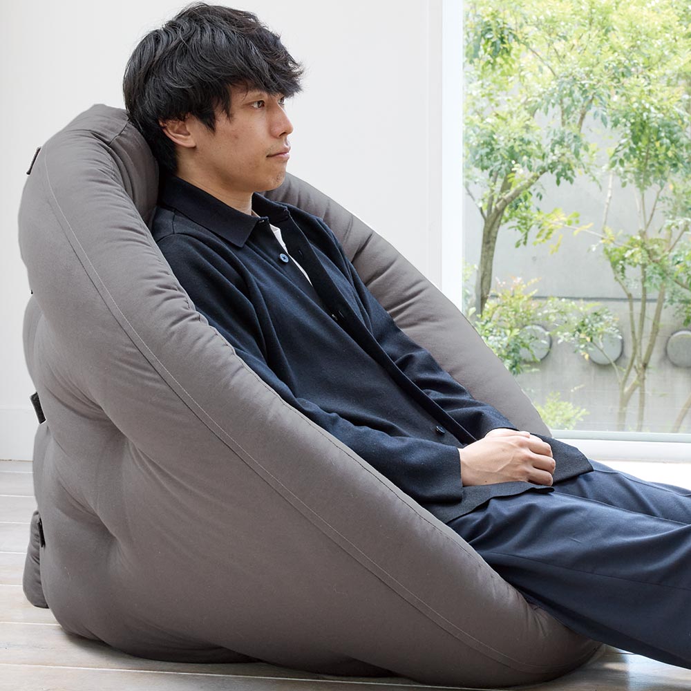レギュラーサイズは男性でも背中がすっぽり包まれるほどのボリューム。