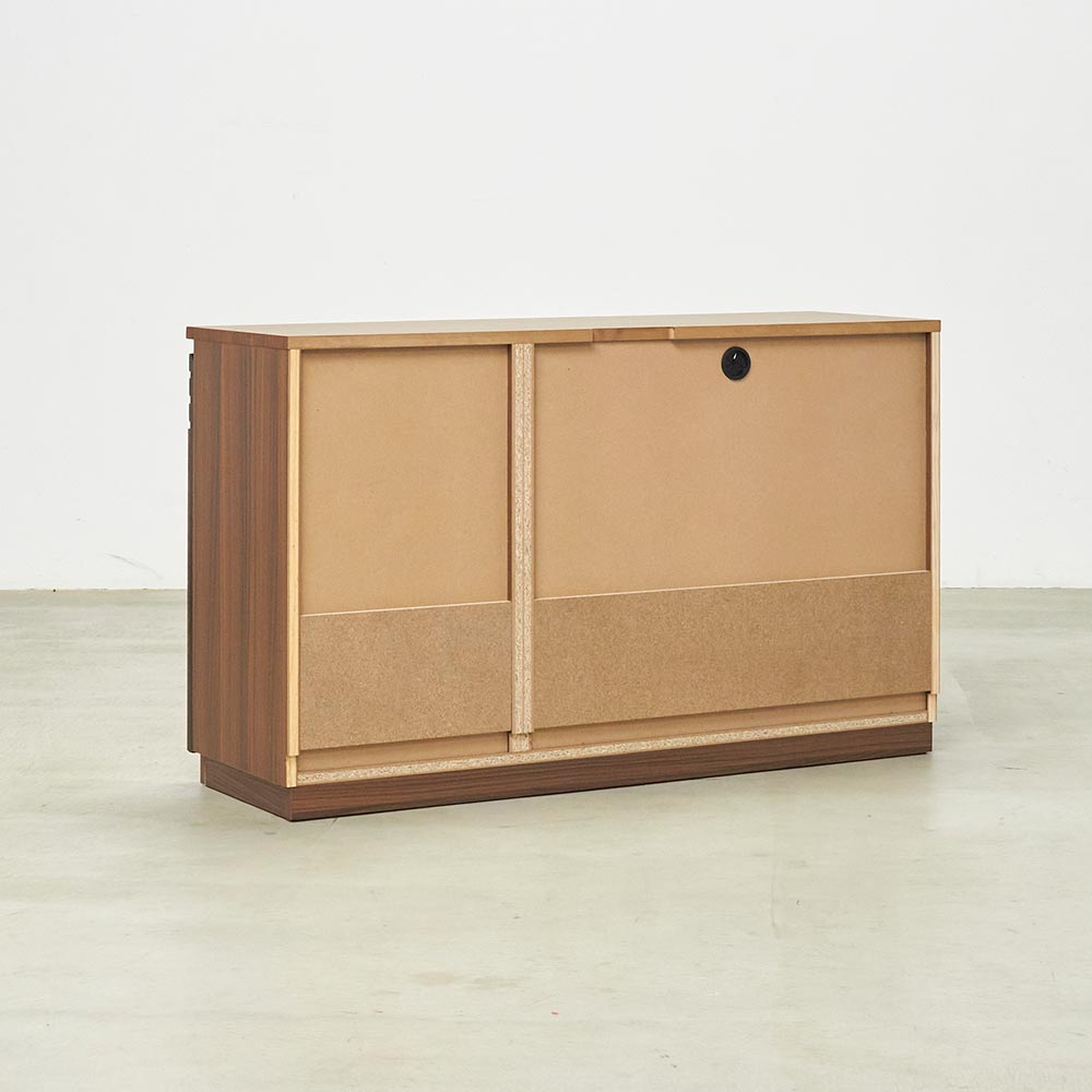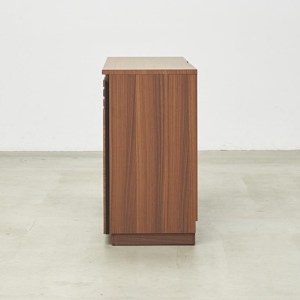 ■素材:前面…(ア)ウォルナット天然木(オイル仕上げ)(イ)オーク天然木(同)・強化化粧合板、天板…強化化粧合板、本体…化粧合板