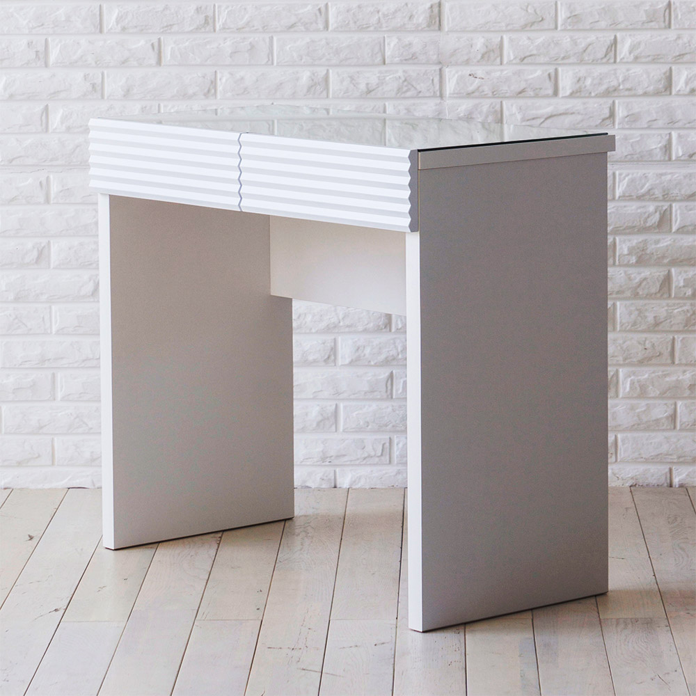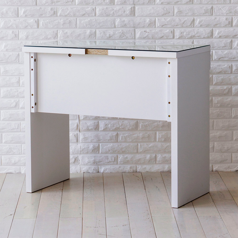 ■組み立ては背板と左右の脚部パネルをつけてガラス天板を乗せるのみ。■複雑な作業はなく設置までスムーズに済むよう設計しました。