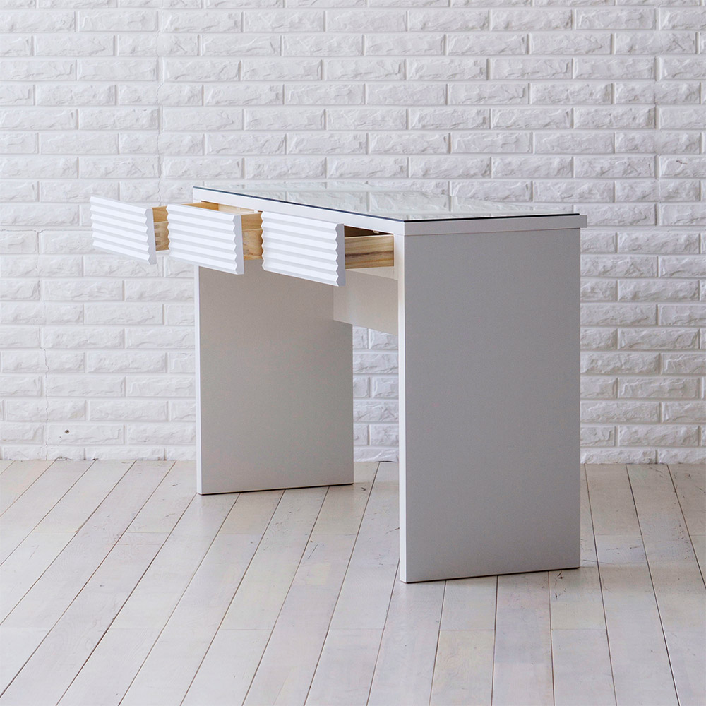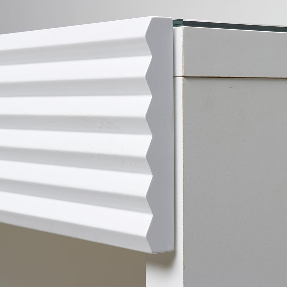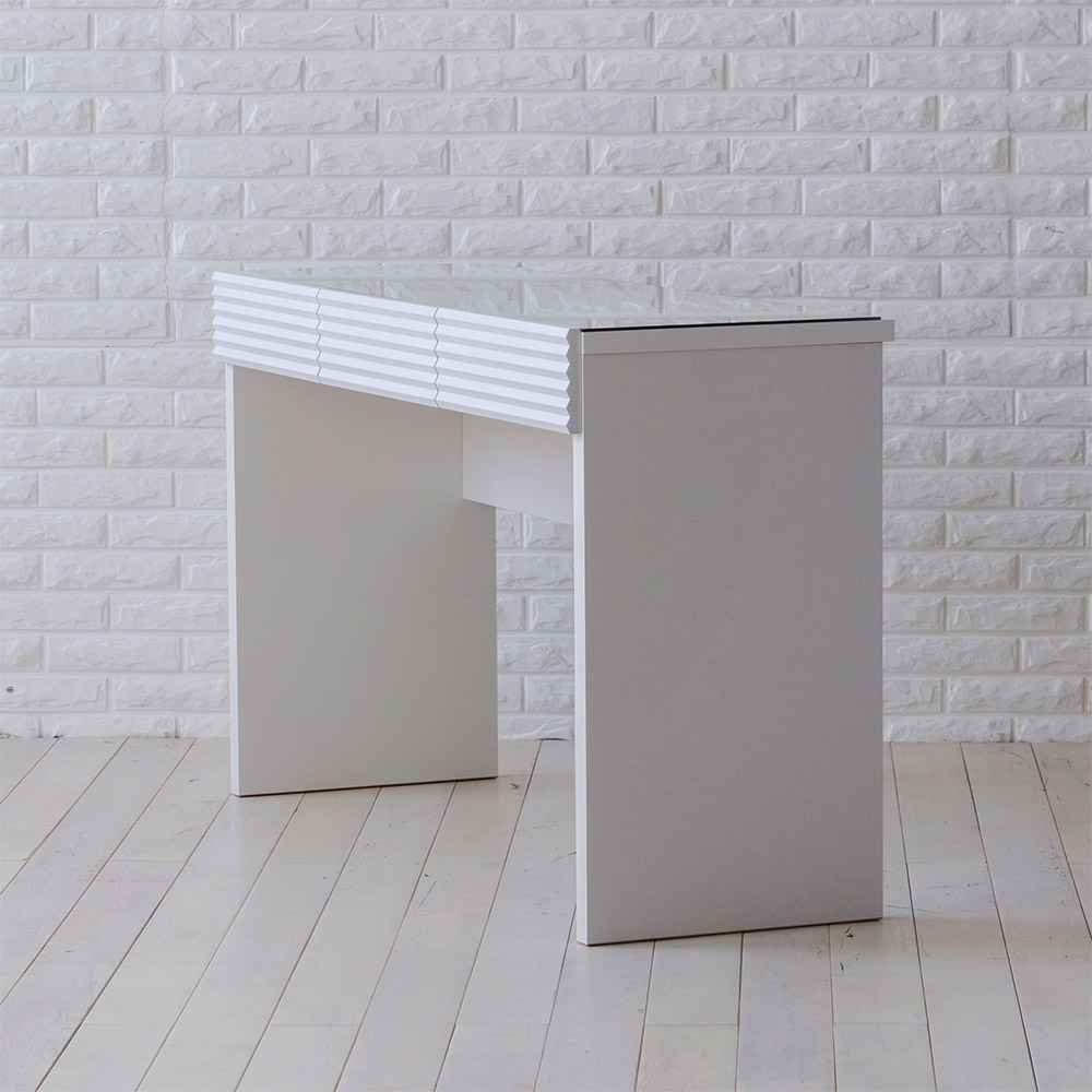 前面に施した立体的なボーダーがリッチなインテリアを叶えるシリーズ。コーディネートしやすいホワイトの家具に丁寧な加工を施すことで、他とは一味違う上質な存在感を放ちます。