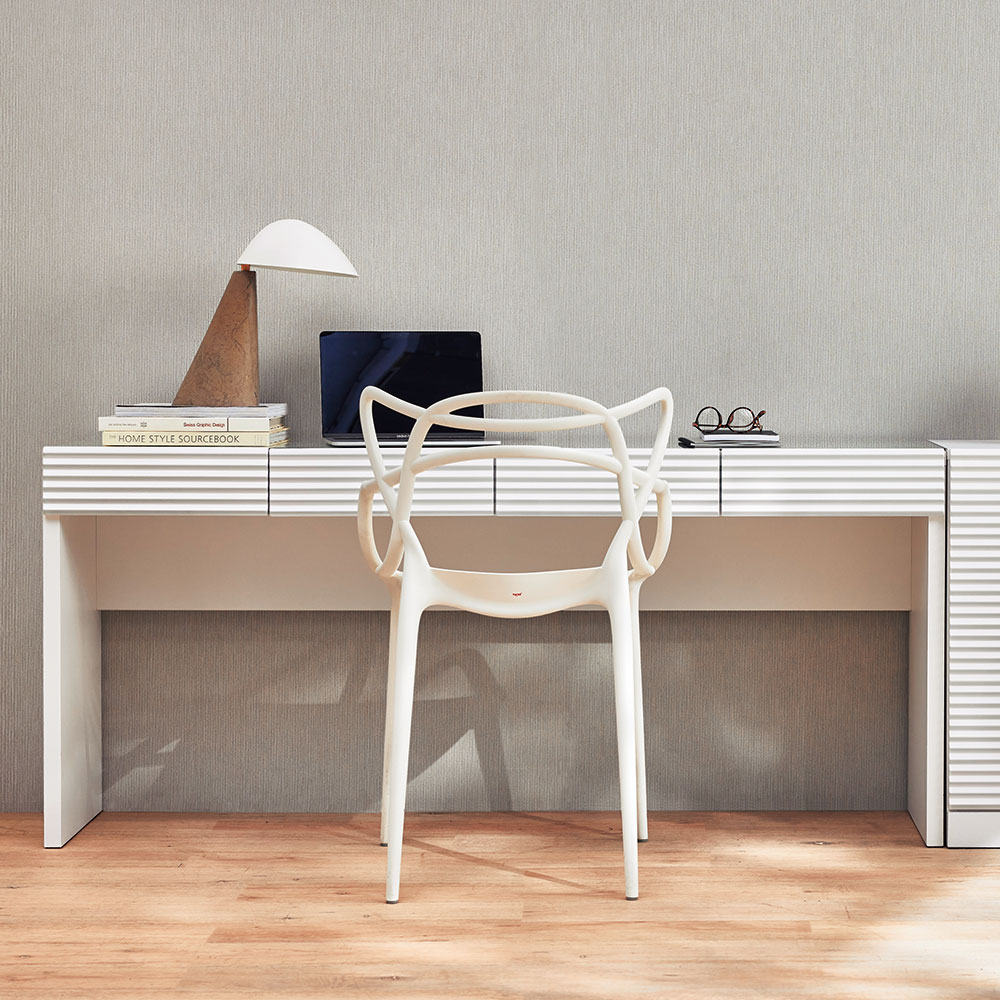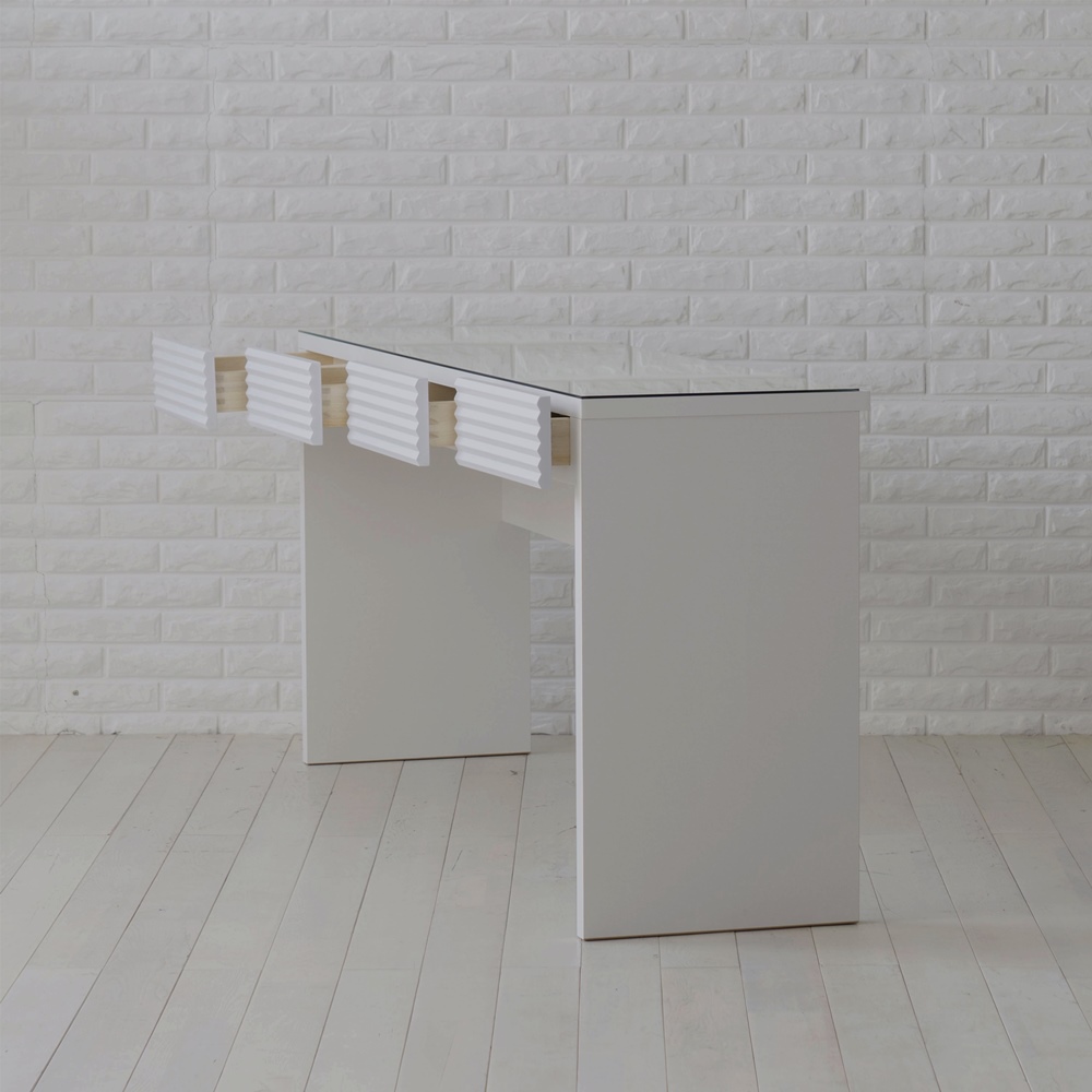 立体ボーダーの表情で魅せる洗練のホワイト家具のオリジナルシリーズ