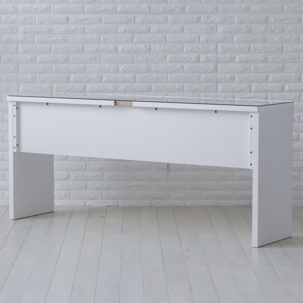 ■組み立ては背板と左右の脚部パネルをつけてガラス天板を乗せるのみ。■複雑な作業はなく設置までスムーズに済むよう設計しました。