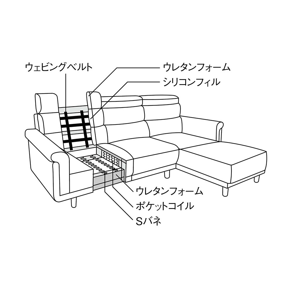 ■素材:張り地…ポリエステル100%、中身…木枠・鋼製バネ・ウェビングベルト・ウレタンフォーム・シリコンフィル、脚部…天然木