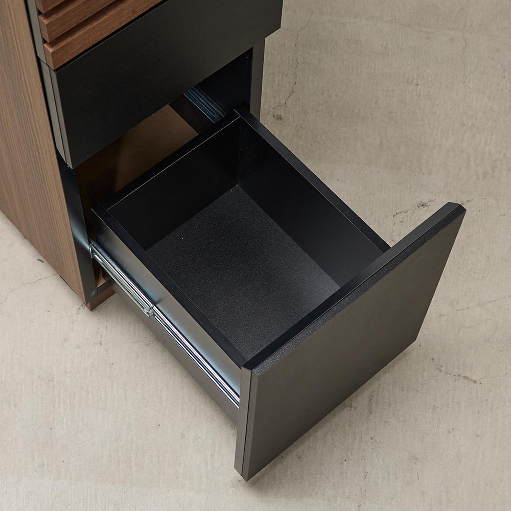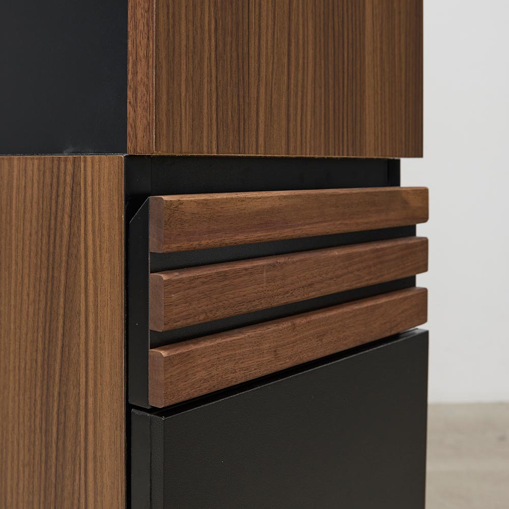 ■素材:前面…ウォルナット天然木(オイル仕上げ)、オレフィン化粧板、側面…化粧合板