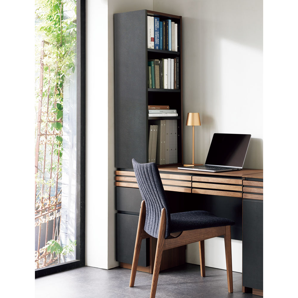 ブラックレザーのシボ感をリアルに再現した表面材を合わせる事で、大人のシックな格調高いインテリアを簡単に実現できるシリーズ。
