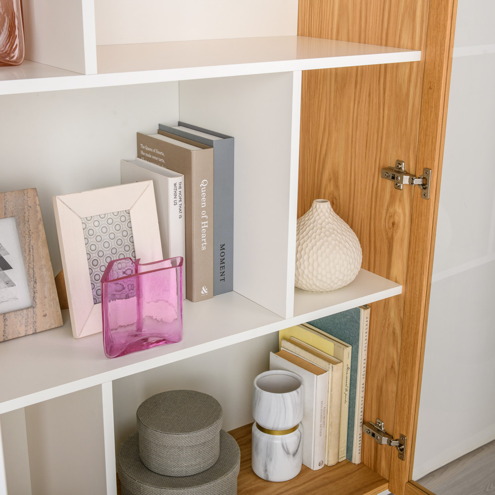 収納部は各段大小の2か所に分割で、様々なアイテムを効率的に収納可能。各棚板は耐荷重15kgで、たっぷりと収納できます。