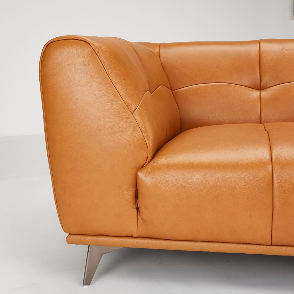どこか懐かしさを感じさせるレザー×キルティング加工。片側の肘掛けがないので空間を広く見せる効果も。本革ソファは、時を重ねるほどに味わい深い風合いが増し、上質な空間を演出する特別なソファです。しっとりとした肌触りと座り心地の良さは、日常にくつろぎをもたらし、使うほどに愛着が深まります。シンプルながらも存在感があり、リビングを格調高く彩る本革ソファ。耐久性にも優れ、長く寄り添う一生もののアイテムとしておすすめです。トレンドの片肘ソファ