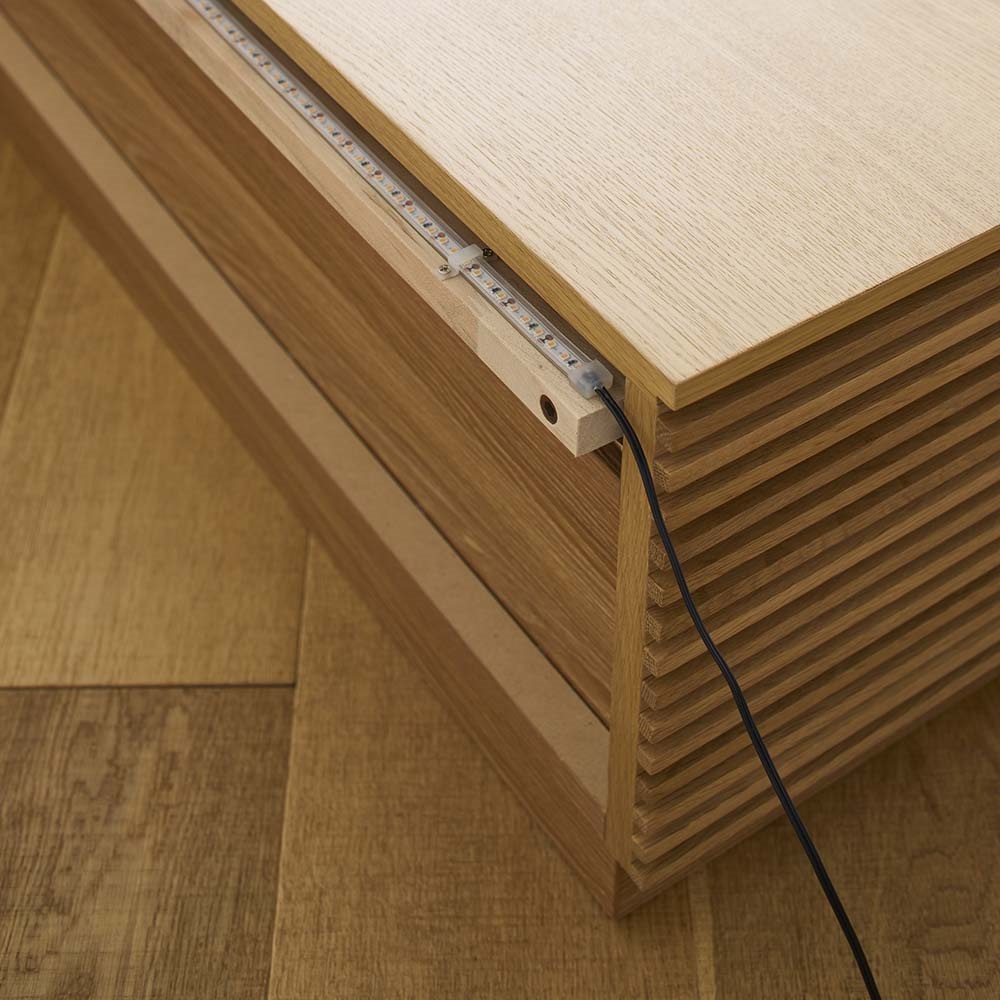ふわりと灯るLEDが間接照明に。天板背面にLEDライトを搭載。やわらかな光が壁面に広がり、リビング空間を美しく演出します。