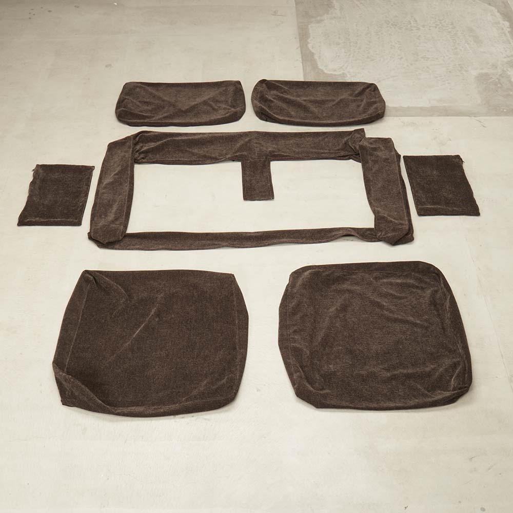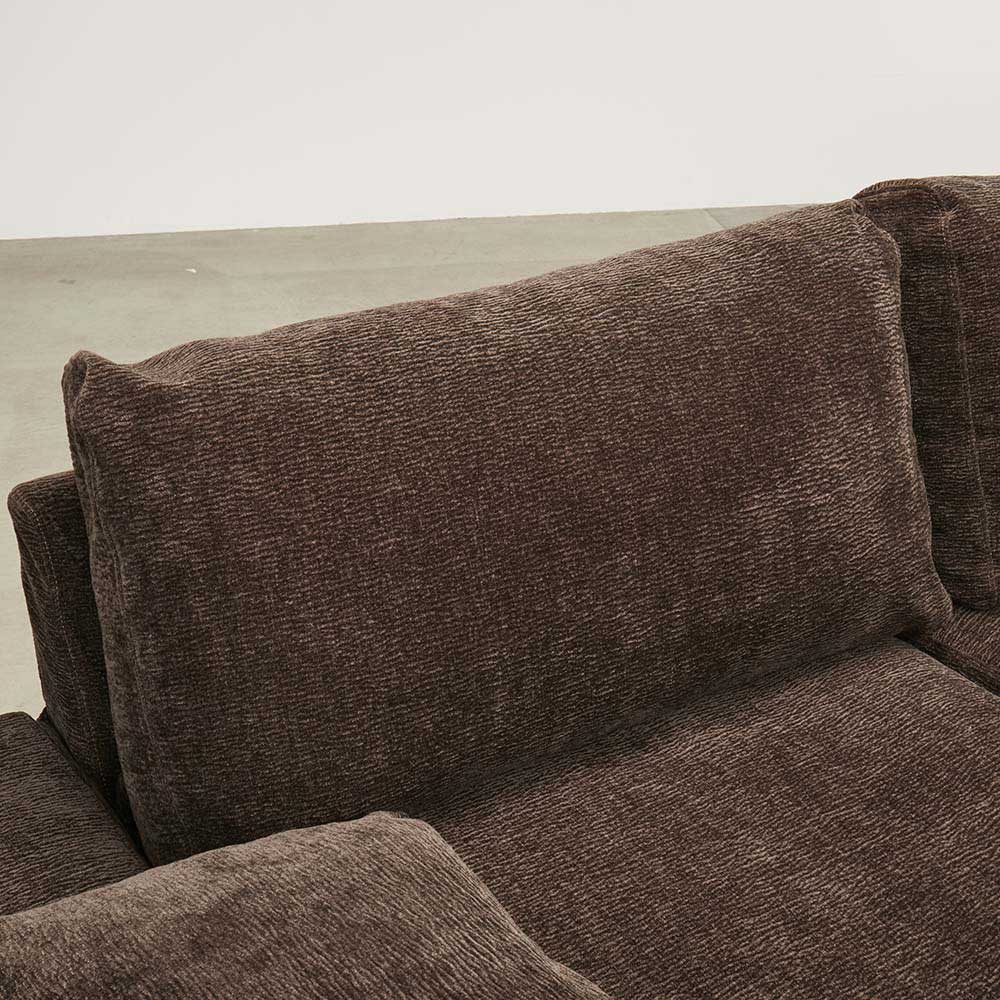 (イ)ブラウン コーデュロイのような凹凸感のある肌触りのよいファブリックで座り心地を格上げ。
