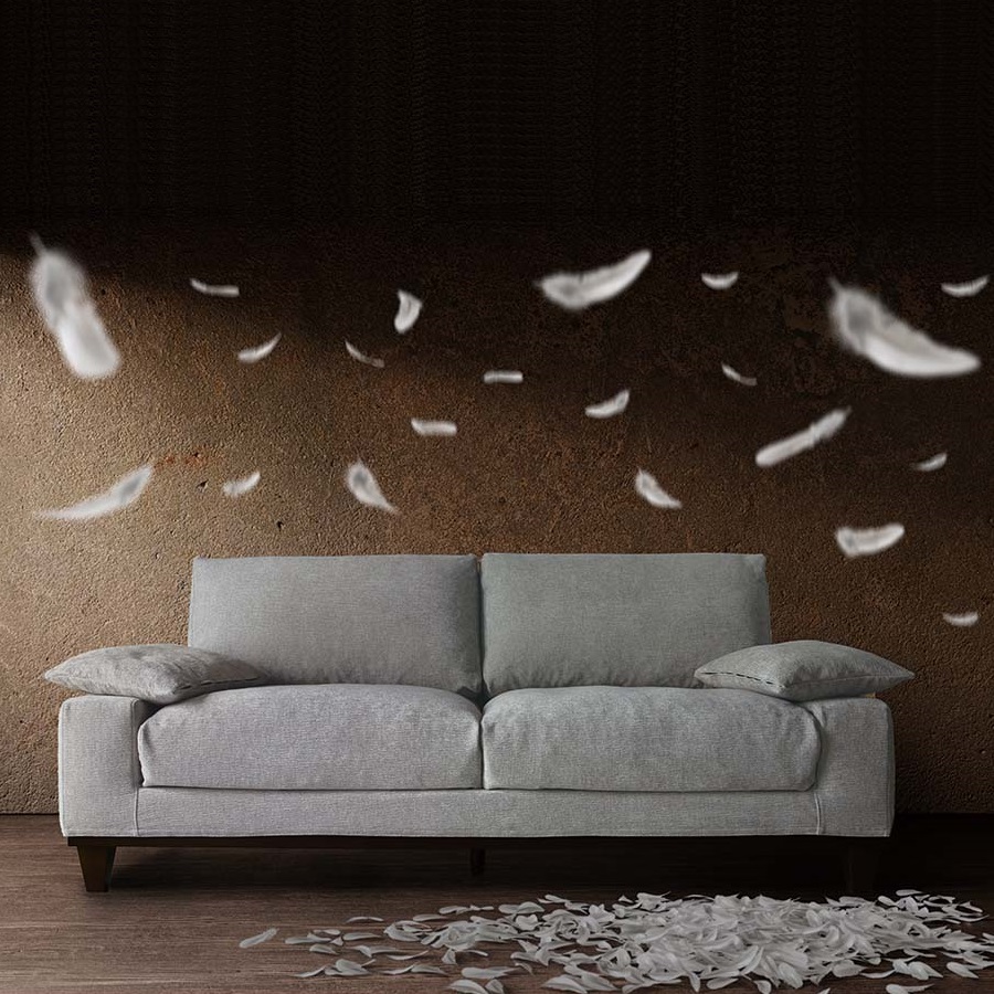 座ると、ふわっととろけるような感覚に。身体を預けると、まるで雲の上にいるような心地よさ…。ため息が漏れるほどの贅沢な座り心地の秘密は、中材にたっぷりと使用したフェザー。広々とした背もたれ、枕代わりにもなるアームクッションで、心ほどけるひとときへ誘います。ロータイプにこだわったデザイン