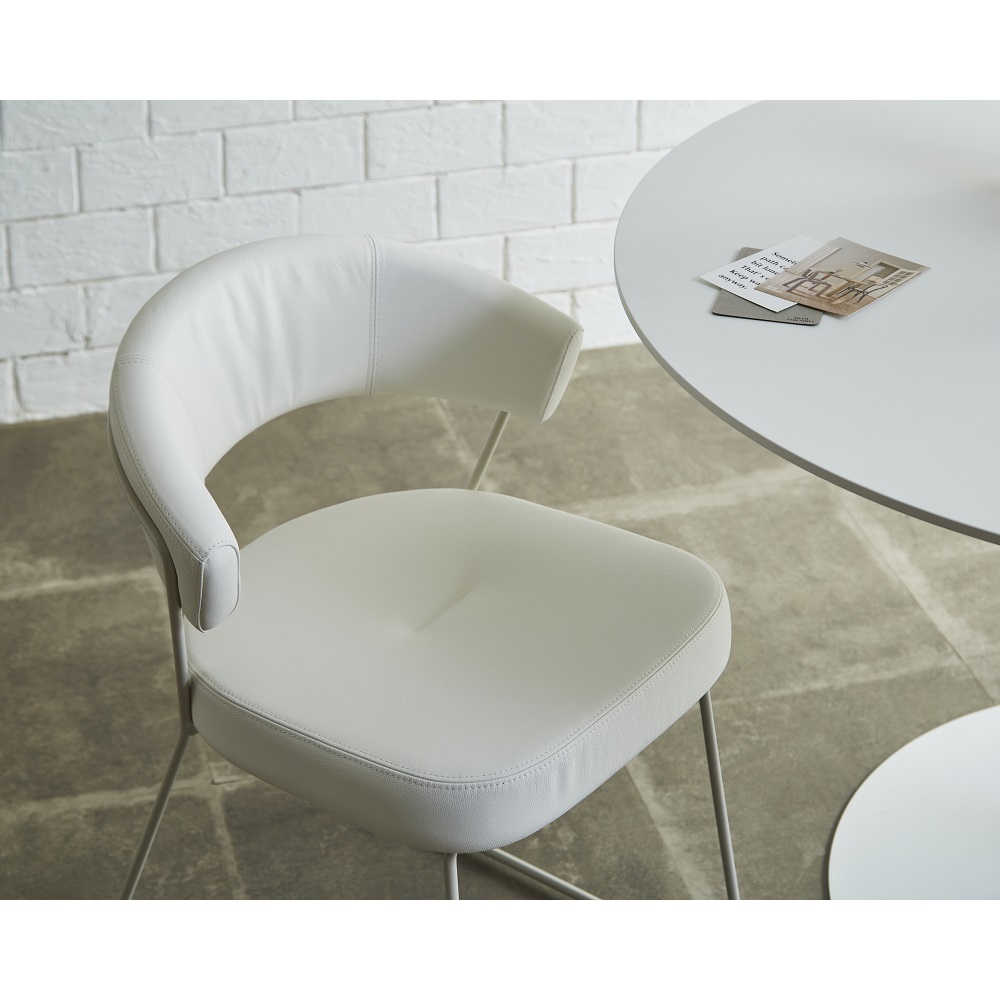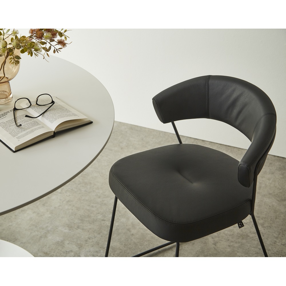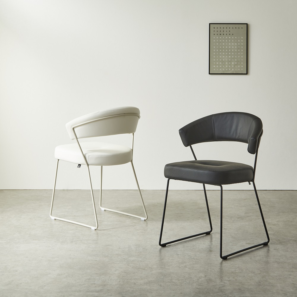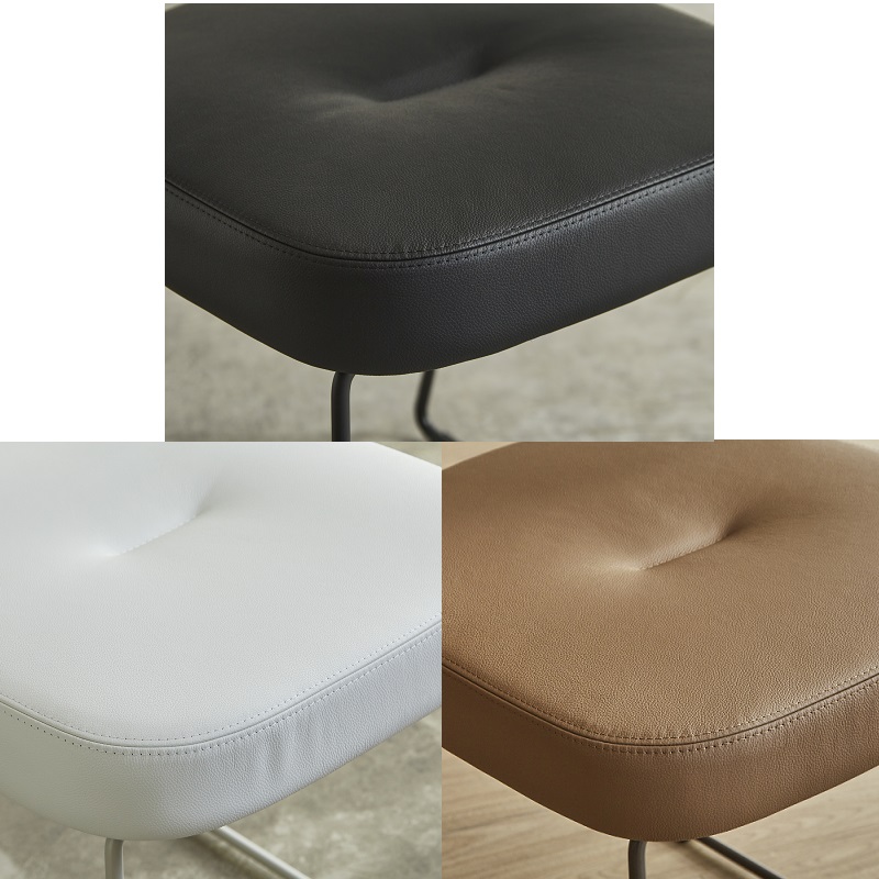 牛革張りのシートに背もたれ、ひと続きになった細身のフレーム。すべてが一体となり、バランスのとれた美しいデザインが完成。アニバーサリータイプは背もたれにステッチのデザインを施し、座面も座り心地をアップさせるようなデザインを追加。