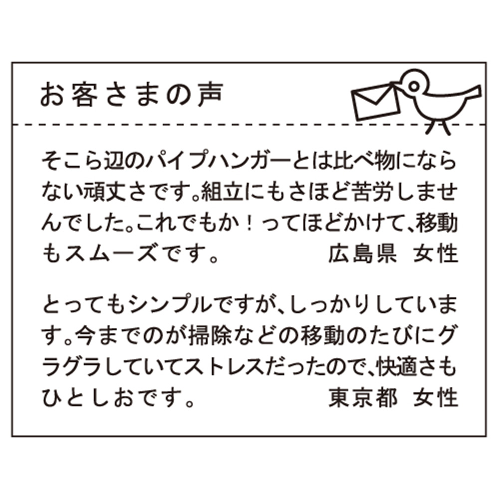●とても使いやすいです。サイズもちょうど良く、クローゼットがすっきりしました。(岡山県 女性)