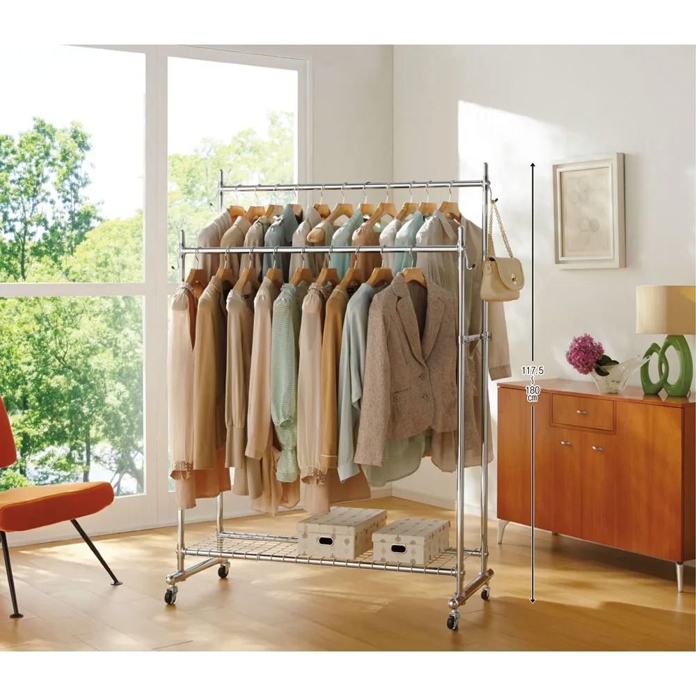 【シリーズ累計100000台突破!】プロ仕様 頑丈ハンガーラック ダブルタイプ・幅120cm ハンガーラック パイプハンガー 衣類収納 631706