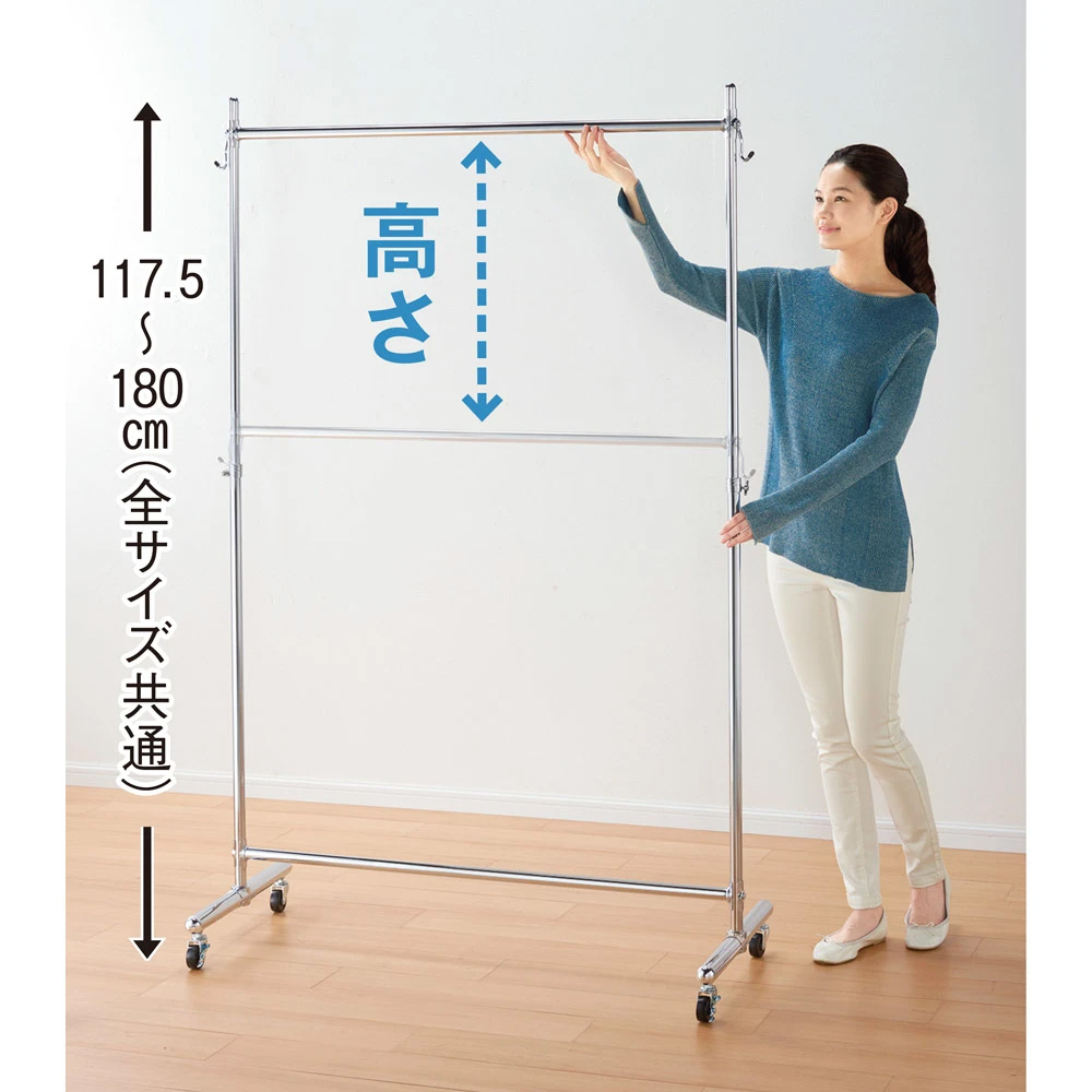 ●ハンガーバーの高さは収納するものに応じて「117.5~180cm」に調節が可能です。●バッグ、ベルトやストールが掛けられるサイドフック付きです。
