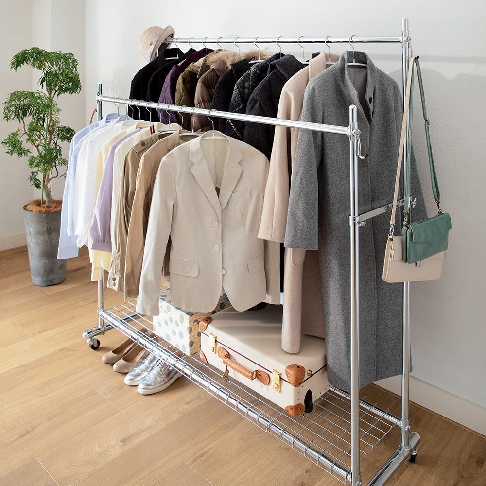 【シリーズ累計100000台突破!】プロ仕様 頑丈ハンガーラック ダブルタイプ・幅150cm ハンガーラック パイプハンガー 衣類収納 631707