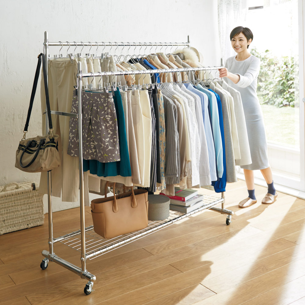 掃除の時など、重たい衣類を掛けたままでもスムーズに動かせます。 ※写真はお届けする商品です。