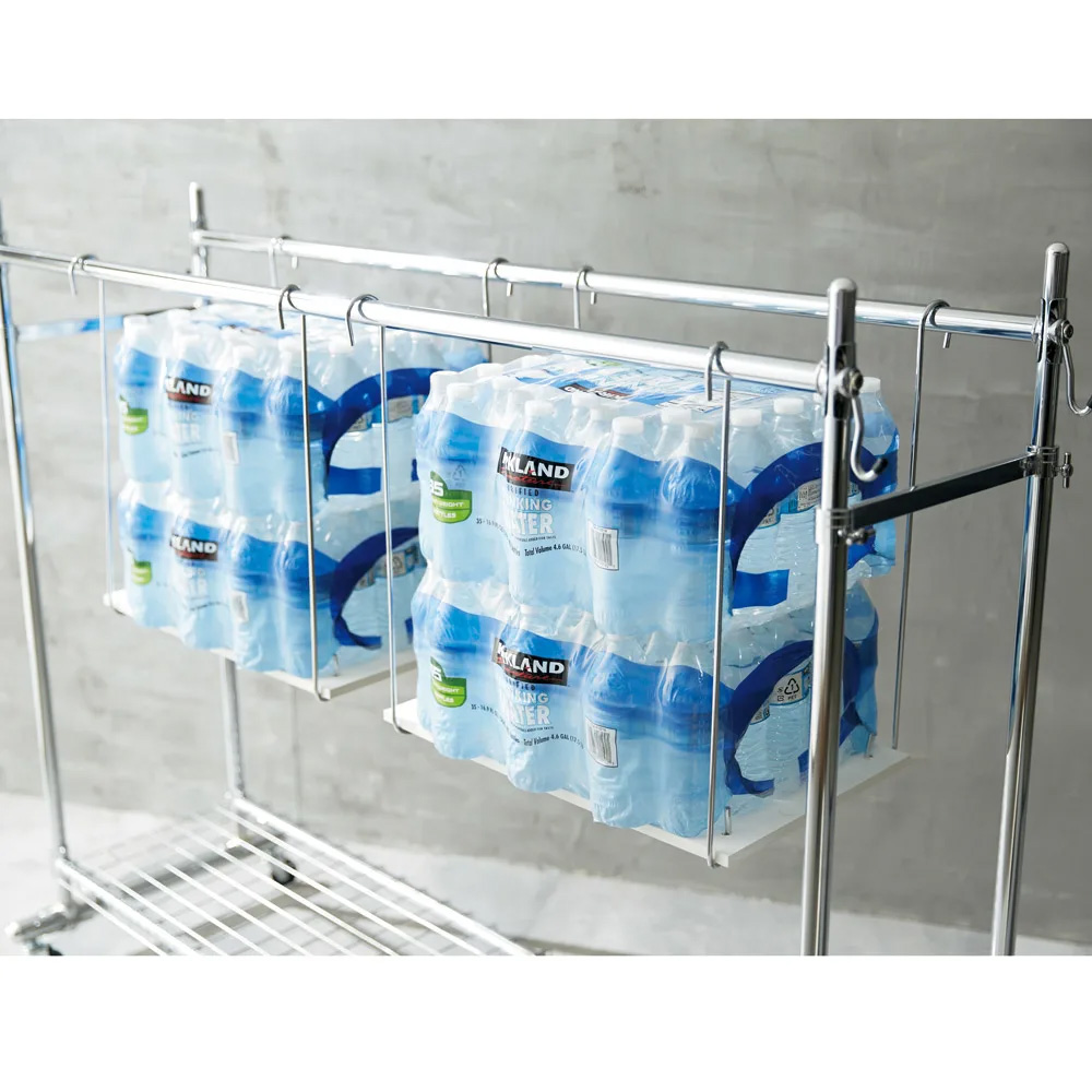 「プロ仕様」だからこその頑丈設計!ペットボトルをこれだけ吊り下げても異常がなく、洋服の重みにもガタつきにくいタフな仕様です。