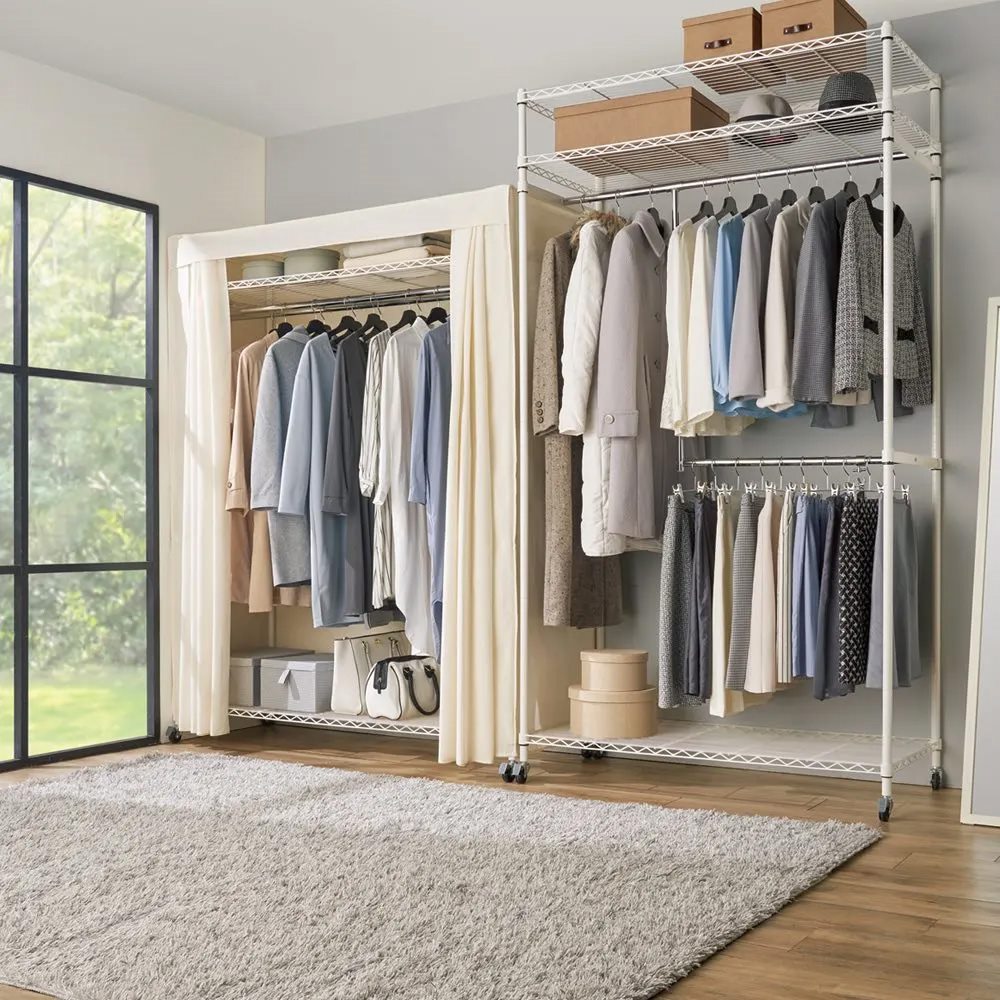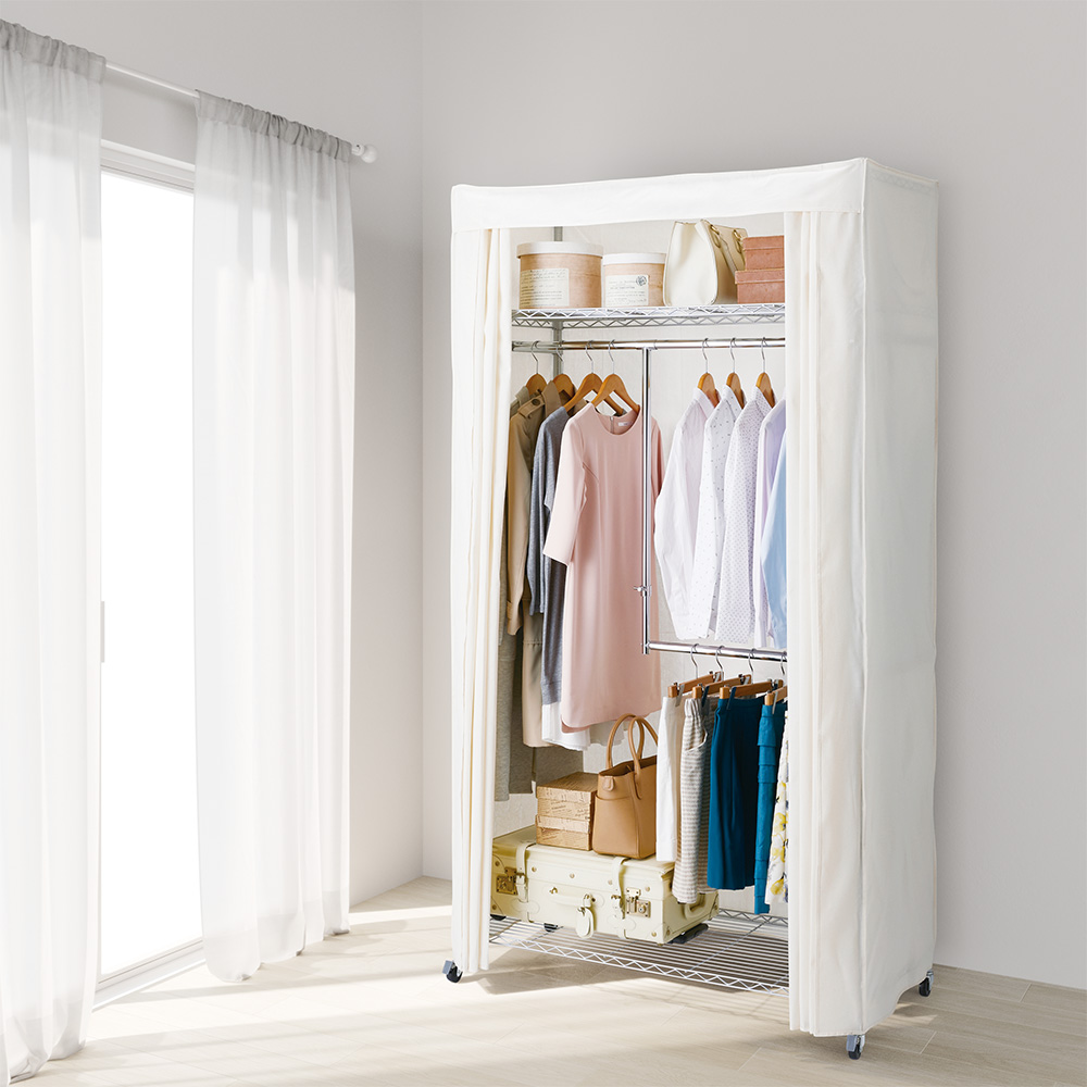 ●本体を覆うフルカバー付きだから日焼けやホコリから洋服をしっかり守ります。(棚を一番上に設定することでカバーの上からも荷物が置けます。)