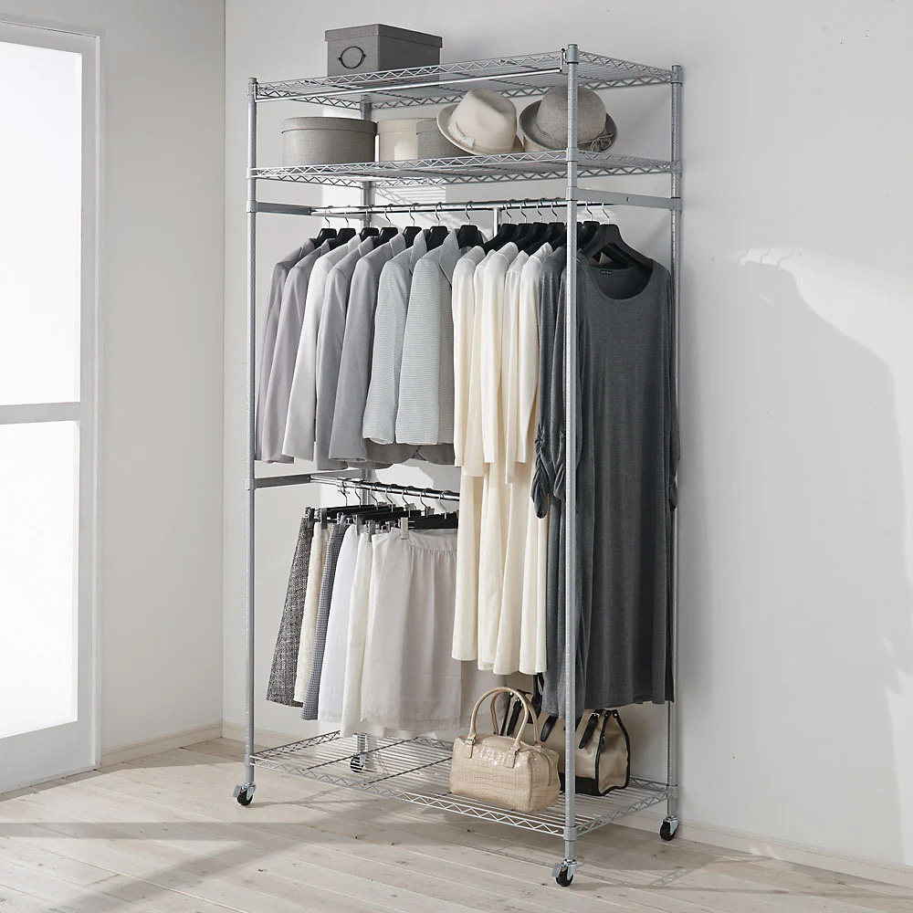 上下2段掛けのハイタイプ。上下2段掛けにすることで家族の衣類をたっぷりと収納できます。