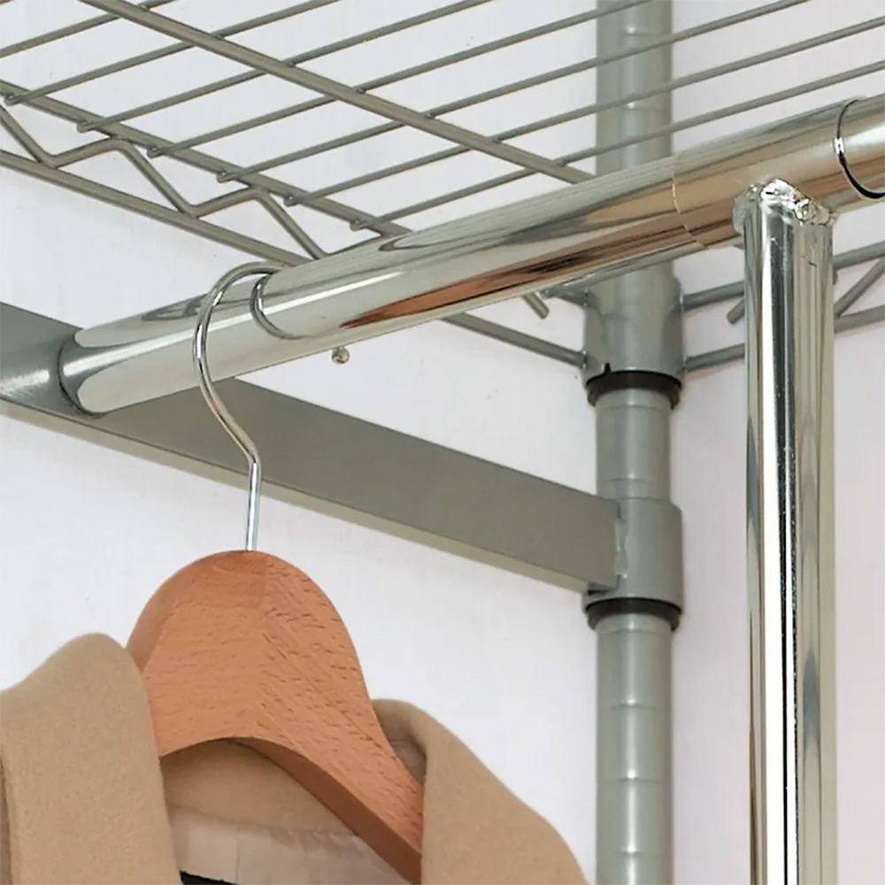 使用イメージ(ア)パイプ色シルバー 棚の位置を高めに設定すればロング丈のコートも余裕で掛けられます。 ※写真は別売りのロータイプ幅152cmです。