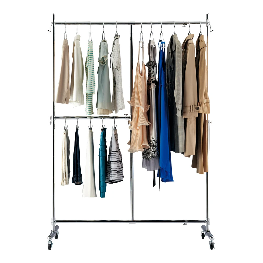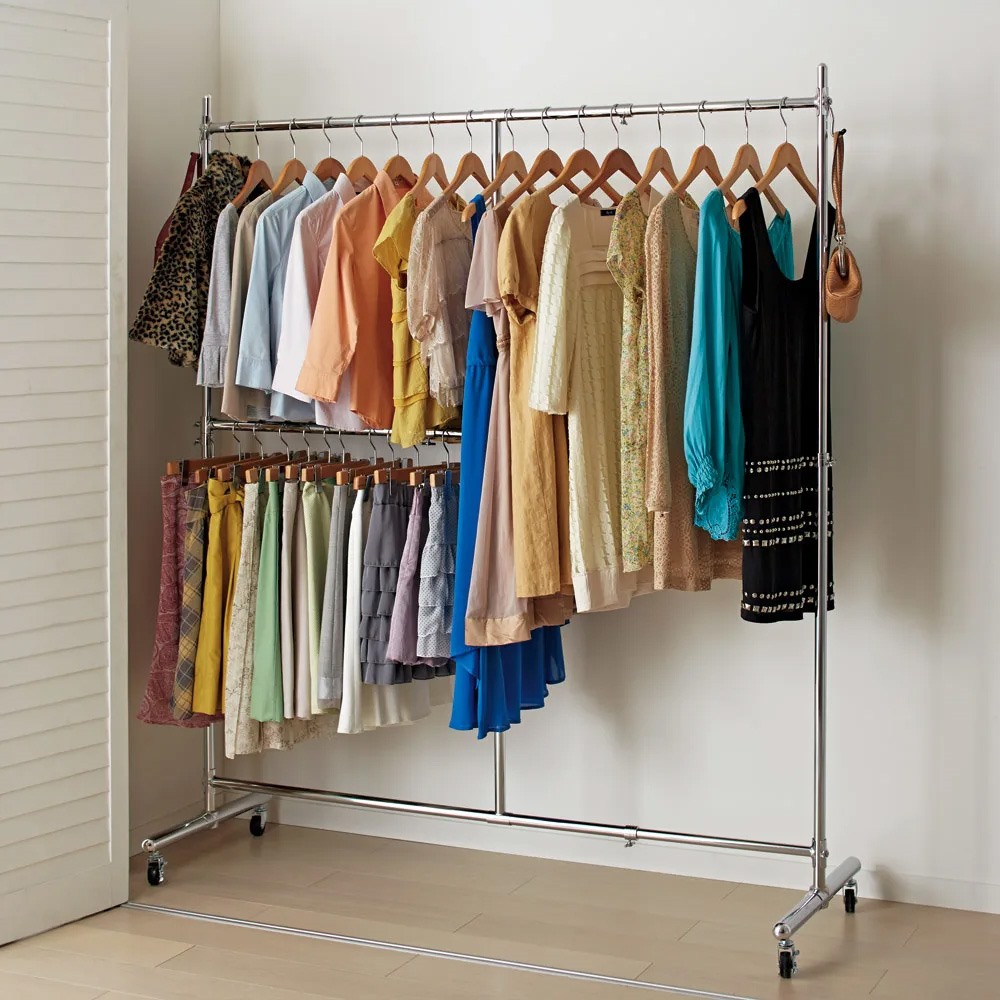 大人気の頑丈ハンガーラックの上下2段タイプです。ジャケットやスカートなどの衣類を分けて大量収納することができます。 ※写真はお届けする商品です。