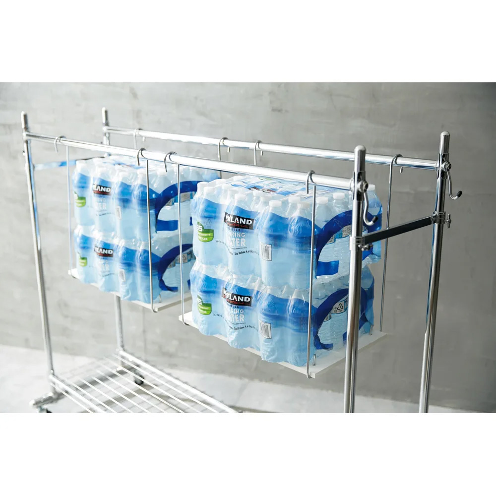 総耐荷重はなんと約60kg! ペットボトルを吊り下げても異常がなく、洋服の重みにもガタつきにくいタフな仕様。衣類をたくさん掛けたい、長く使いたい方におすすめのハンガーです。 ※写真は別売りのダブルタイプです。