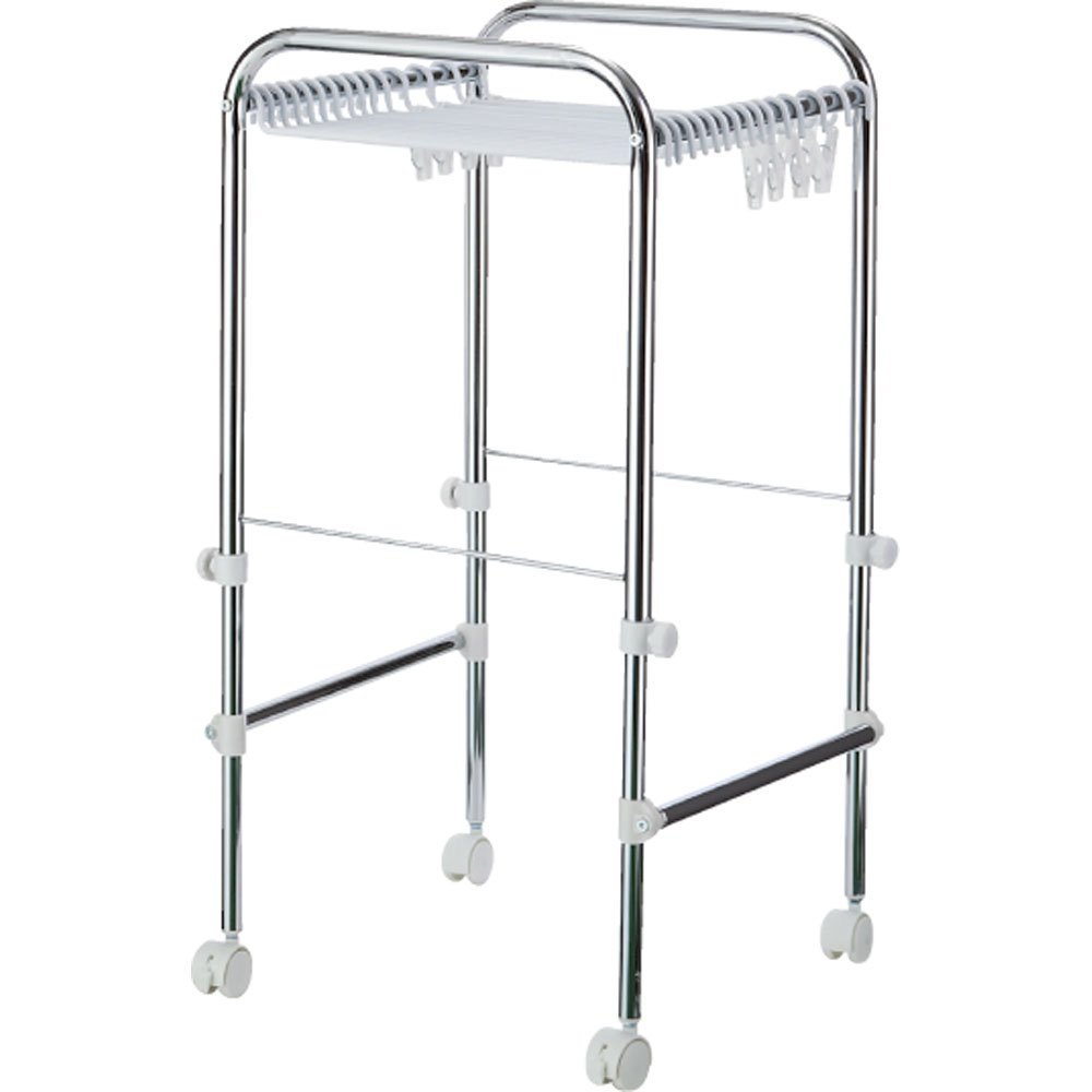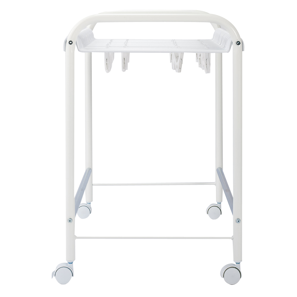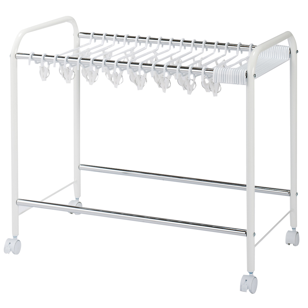 ◎ずれ落ちにくい山型ハンガー。 ◎スカート用ピンチ付き。 ◎ストッパー付きキャスター。