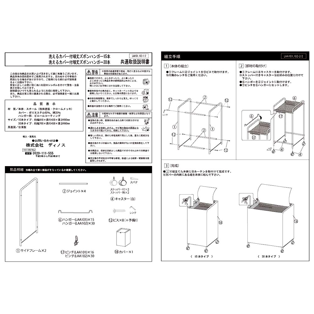 ■本体…スチール(粉体塗装・クロムメッキ) ハンガー…ビニールコーティング カバー…ポリエステル65・綿35%