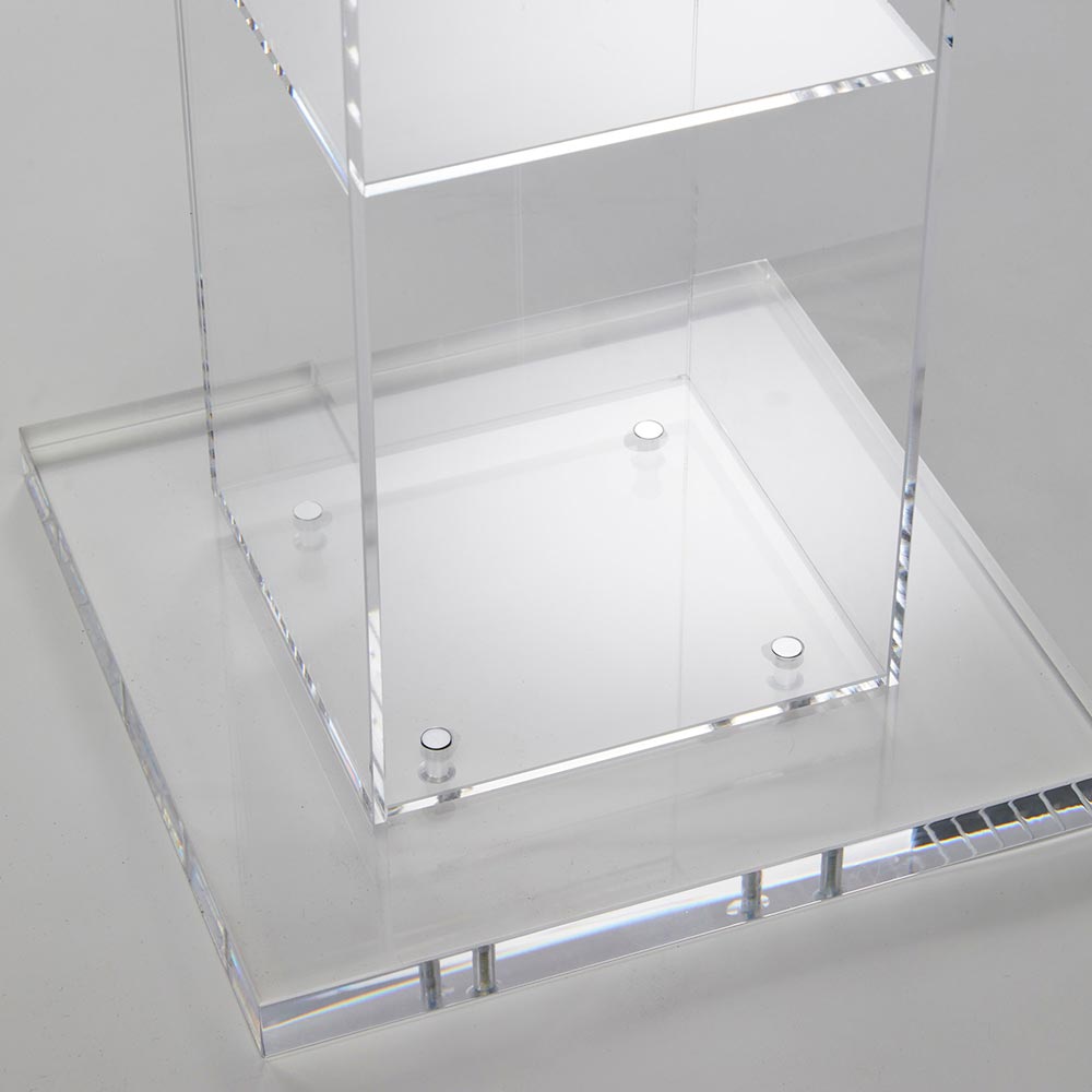 アクリルの透明感が美しい、厚さ2.5cmのどっしりとした台座がタワーを支えます。