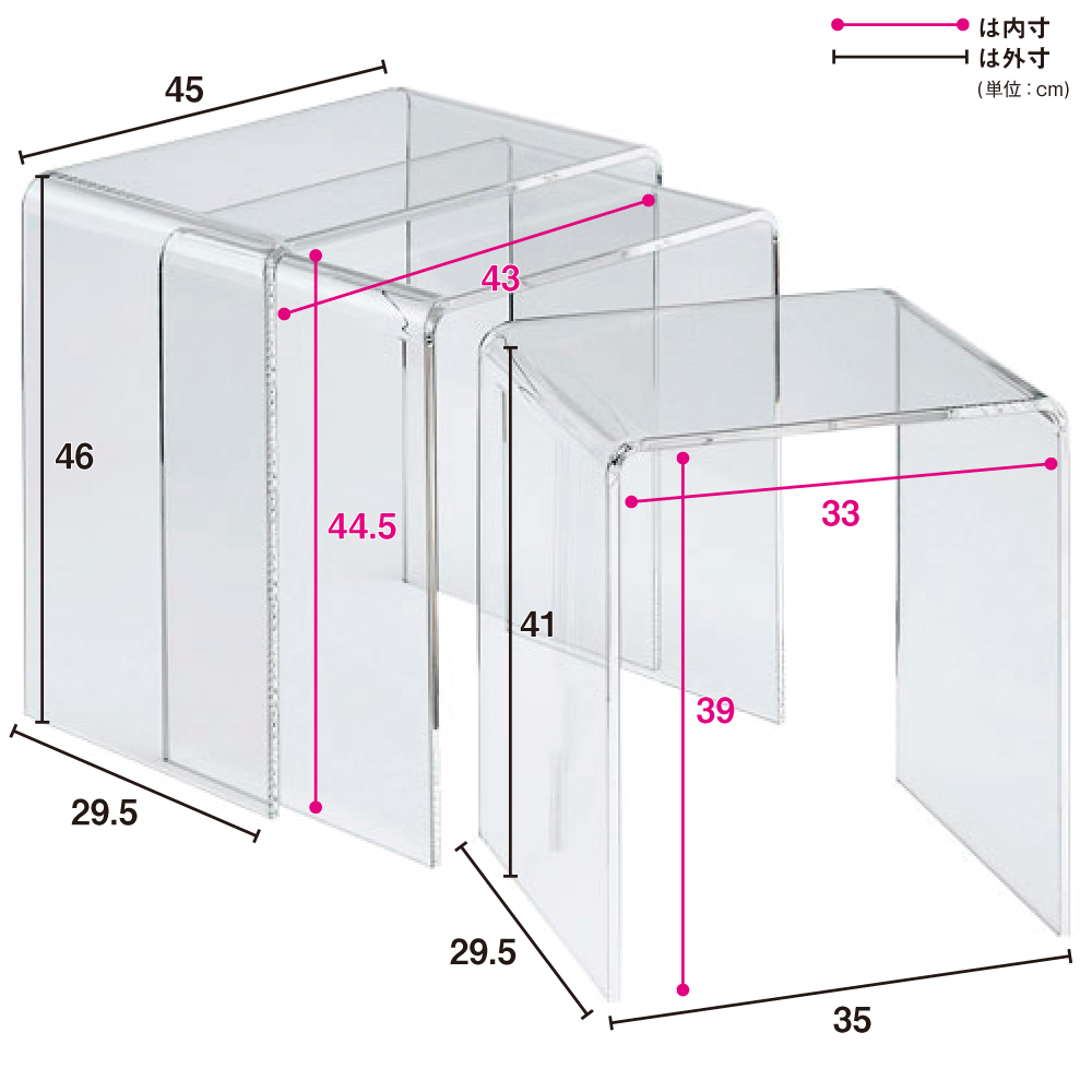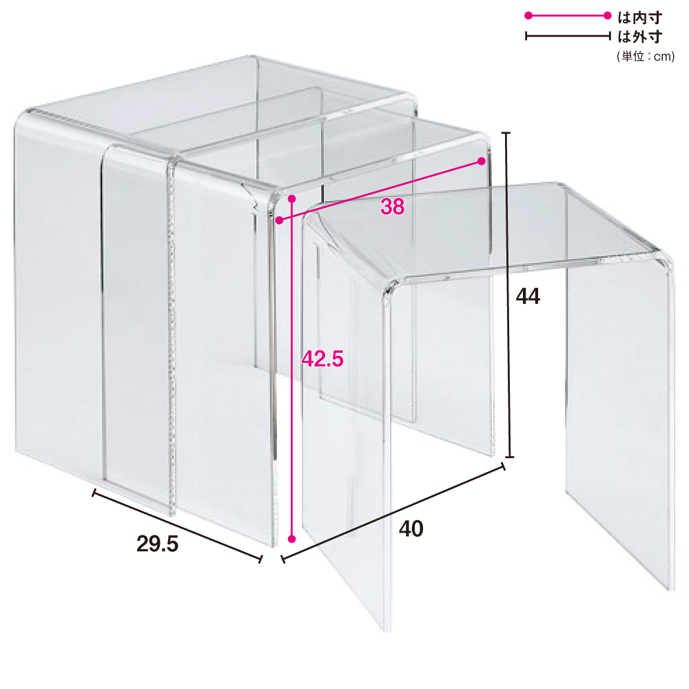 Gel/ジェル アクリルネストテーブル 3台セット ネストテーブル テーブル H93210