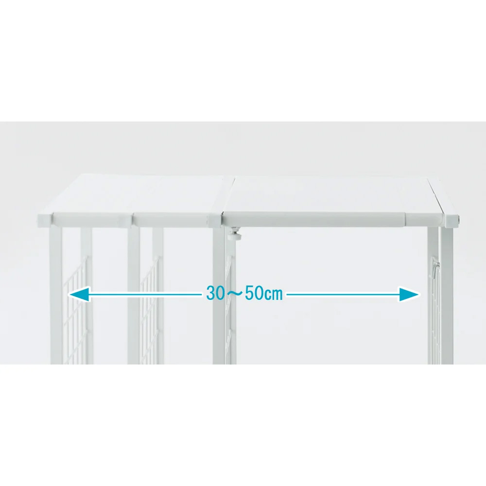 ●本体幅は最少30~最大50cmで伸縮できるので、省スペースから大スペースまでの隙間にピッタリ。●天板耐荷重25kgです。