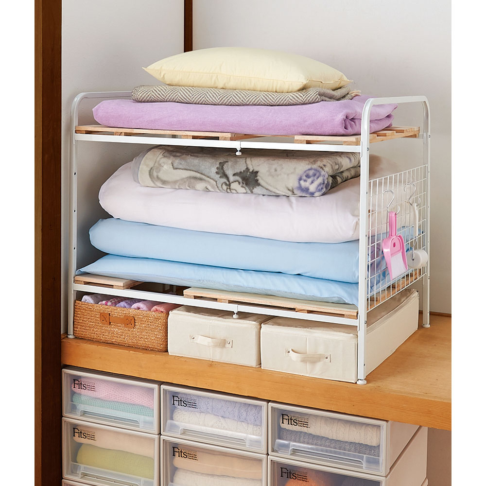 頑丈幅伸縮すのこ布団台シリーズ 押し入れ上段用棚2段 押入れ クローゼット収納 衣類収納 633215