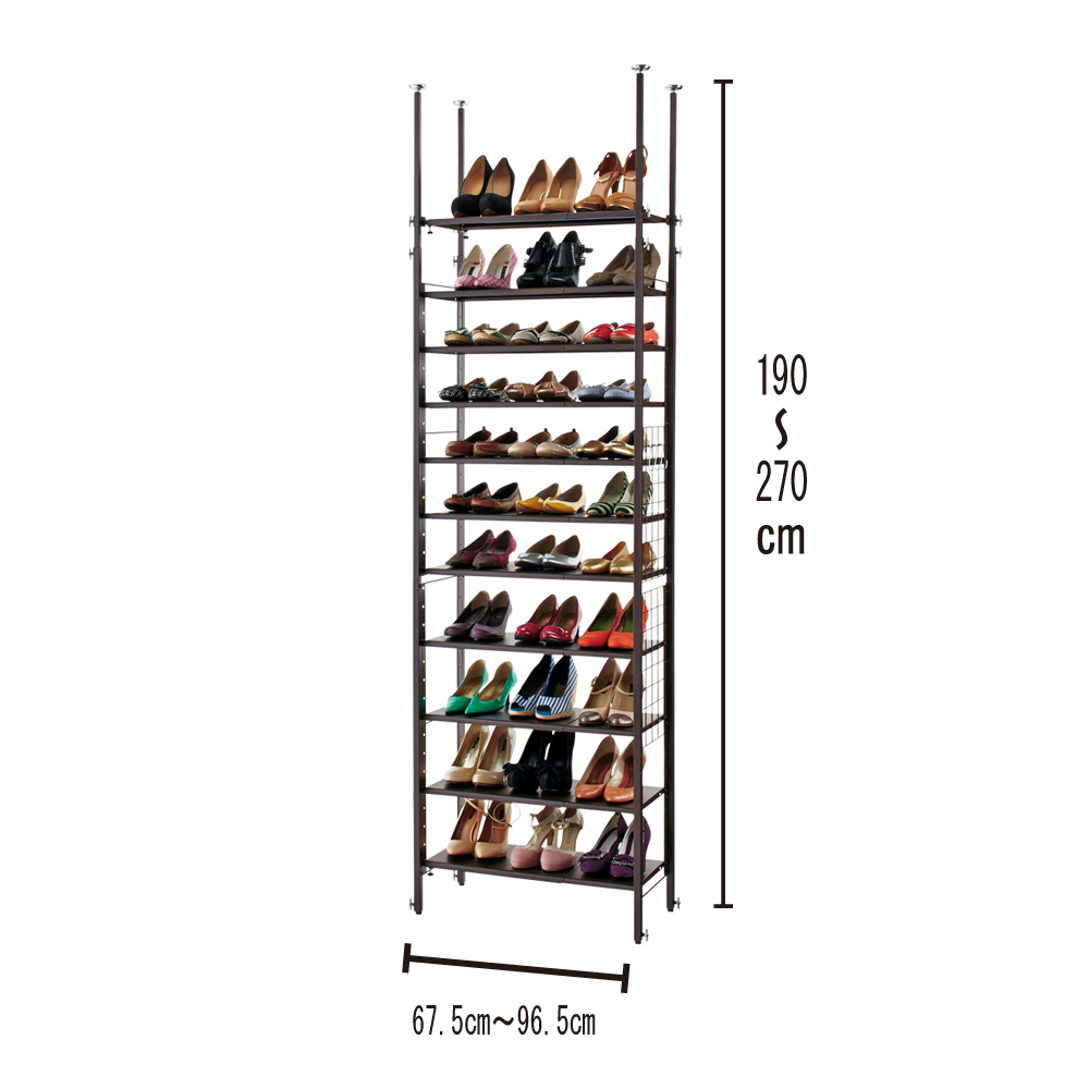 玄関の段差対応伸縮シューズラック 突っ張り式 11段 シューズラック ケース 下駄箱 玄関収納 631603